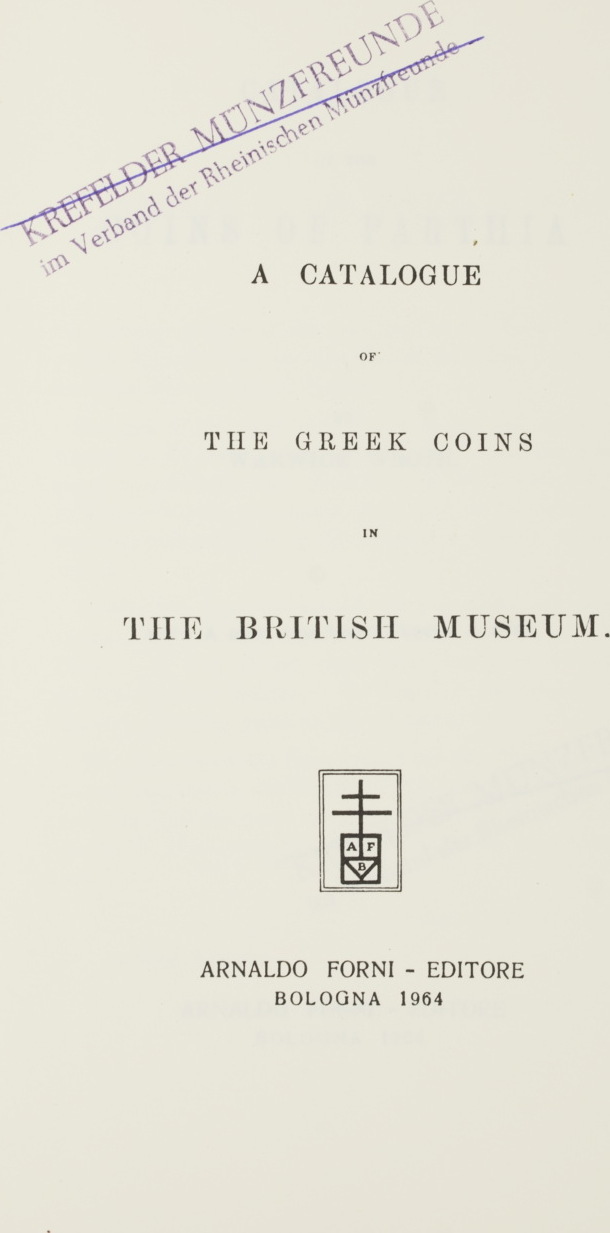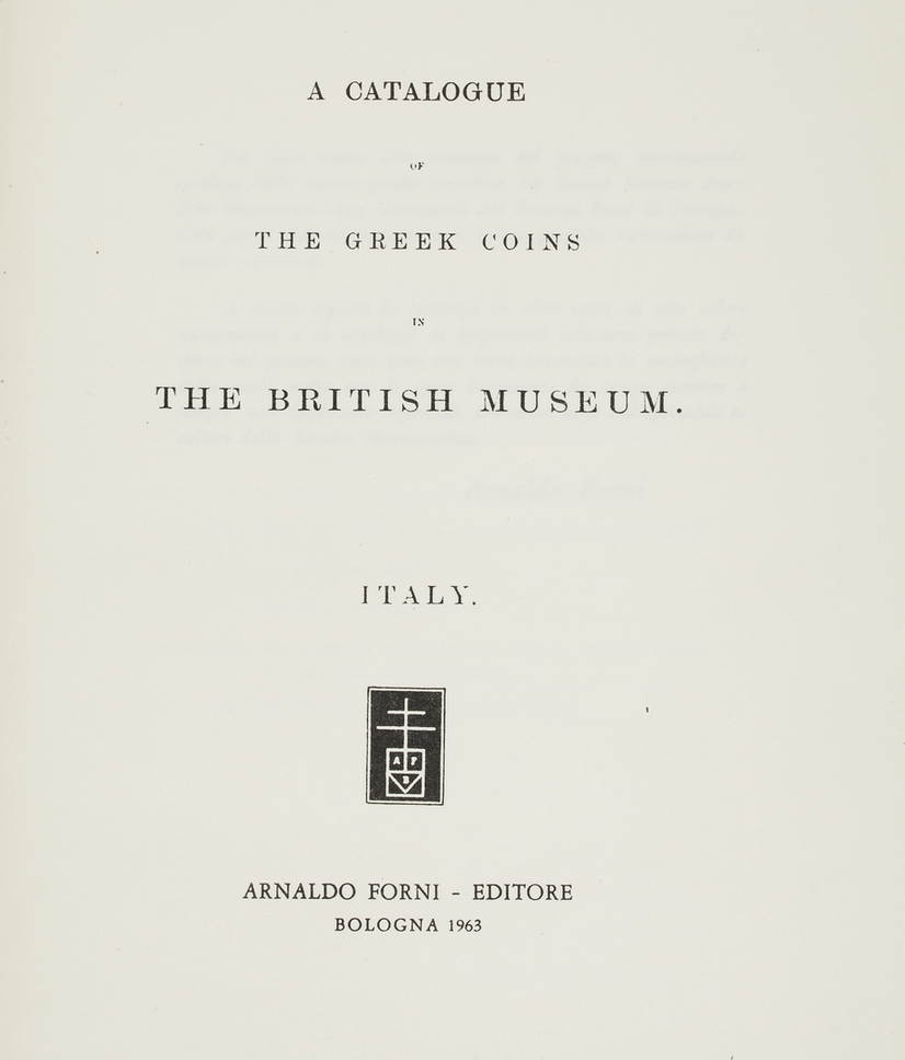 Buch 1887 (1963) BMC British Museum Catalogue of Greek Coins Band X