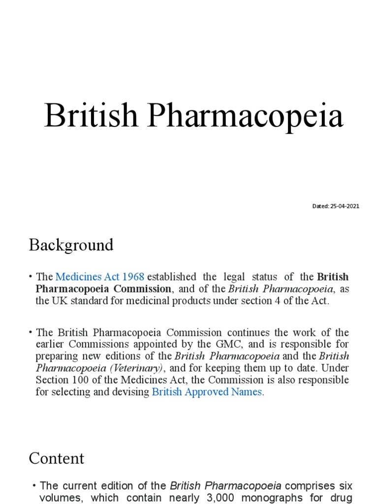 Exploring the British Pharmacopoeia An Overview Pharmacy Infoline