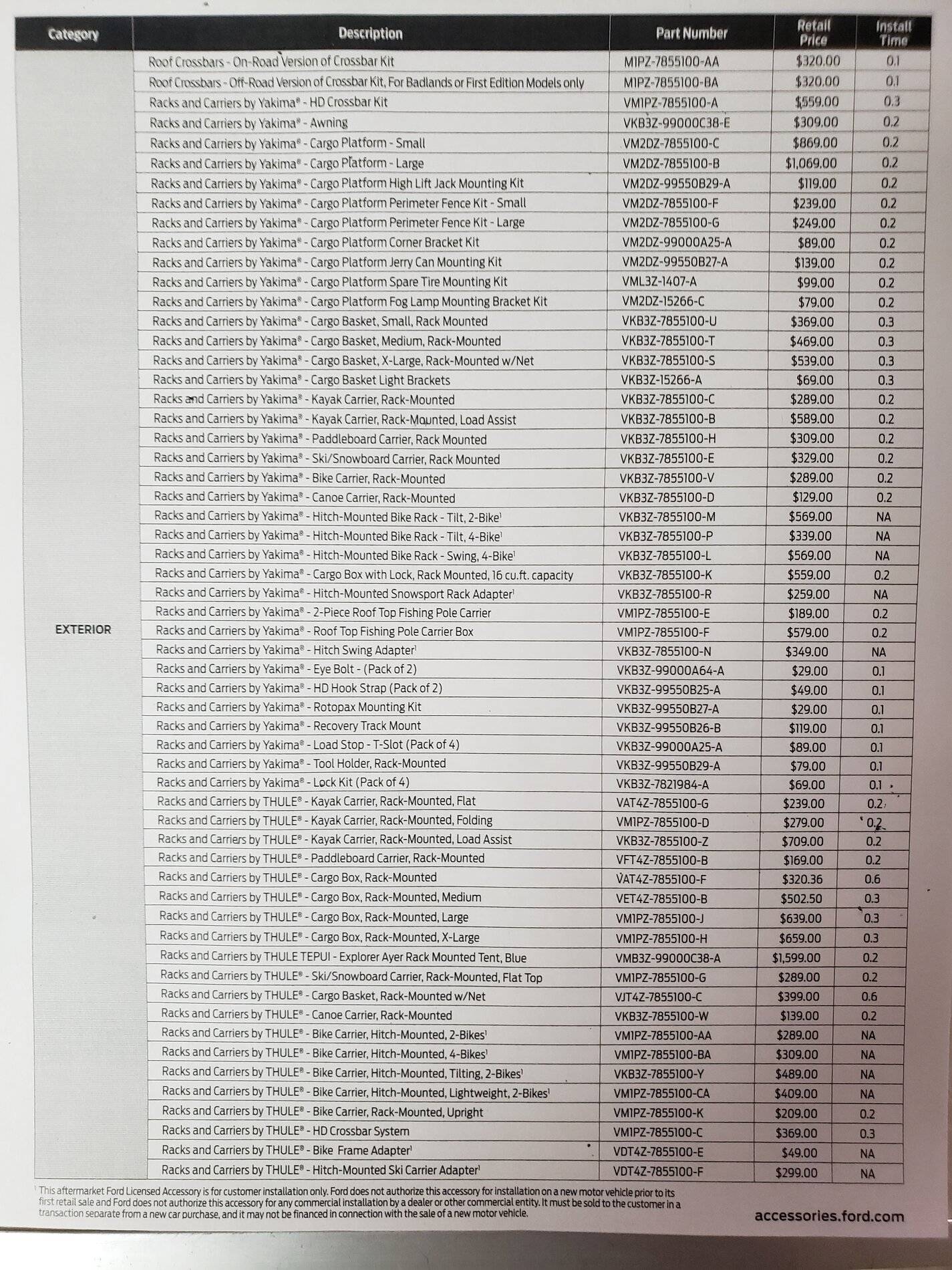 Ford Bronco Accessories Catalog w/ Part Numbers and Retail Pricing