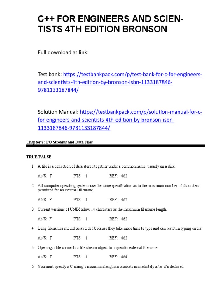 C++ For Engineers and Scientists 4th Edition Bronson Test Bank Download