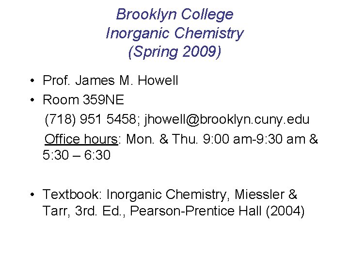 Lecture 1 Brooklyn College Chemistry Spring 2009