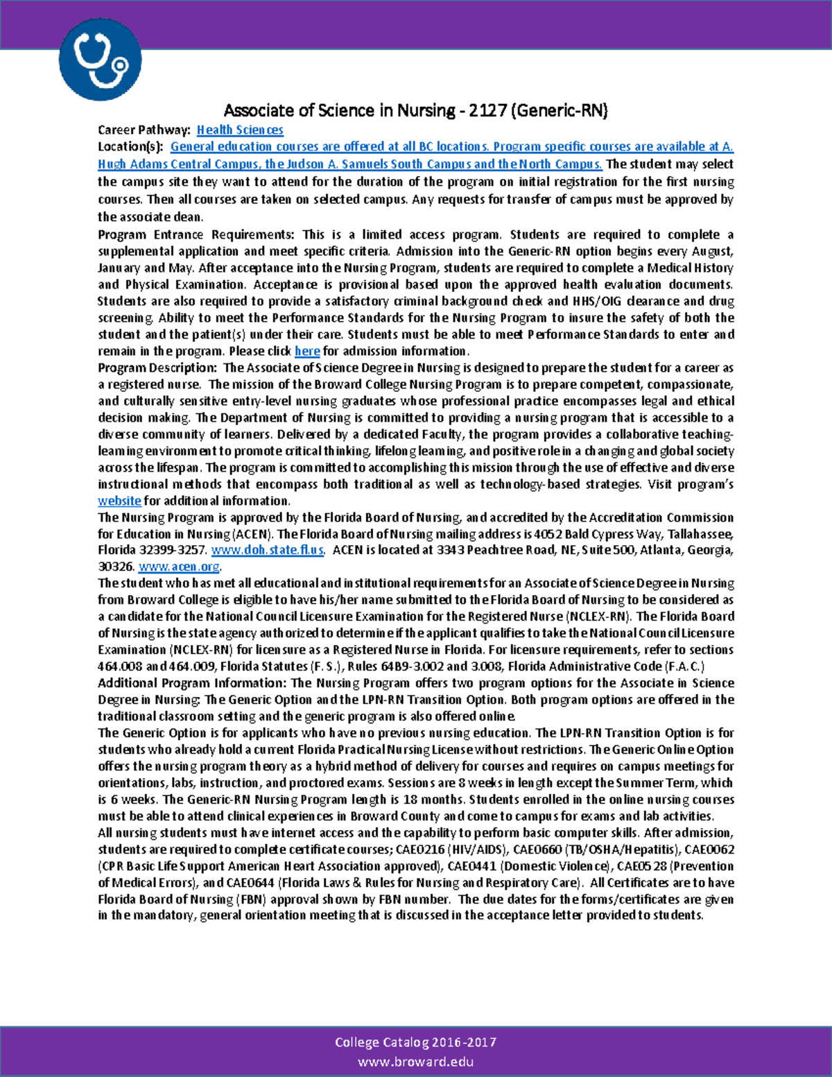 Nursingrn prgm guide 2127 final College Catalog 2016201 7 broward