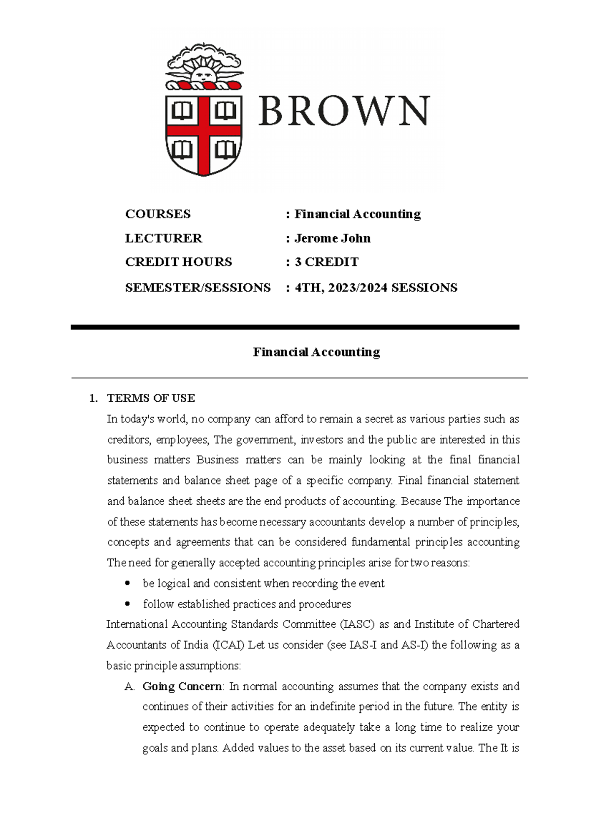 Basic Accounting Principles COURSES Financial Accounting LECTURER