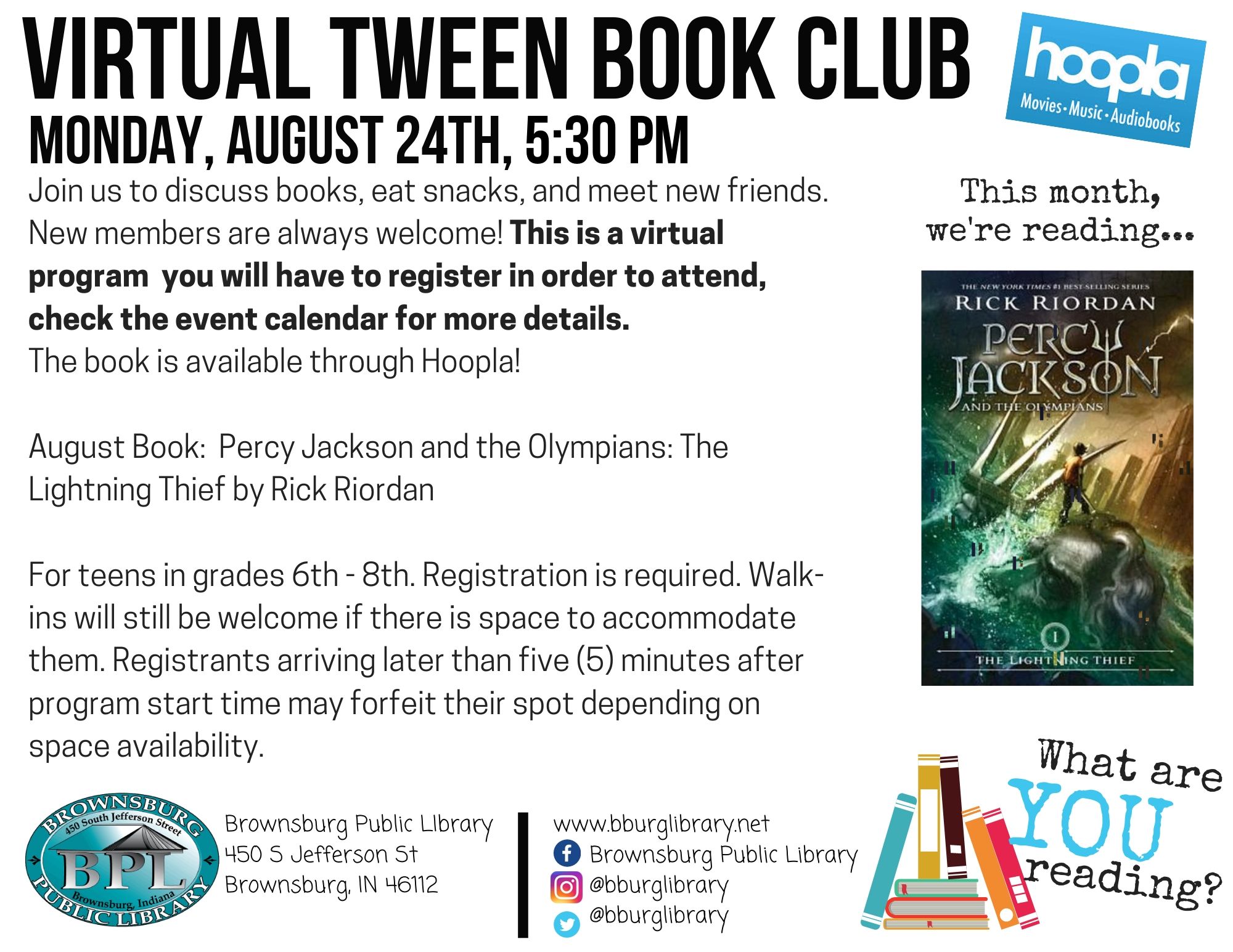Virtual Tween Book Club Brownsburg Public Library