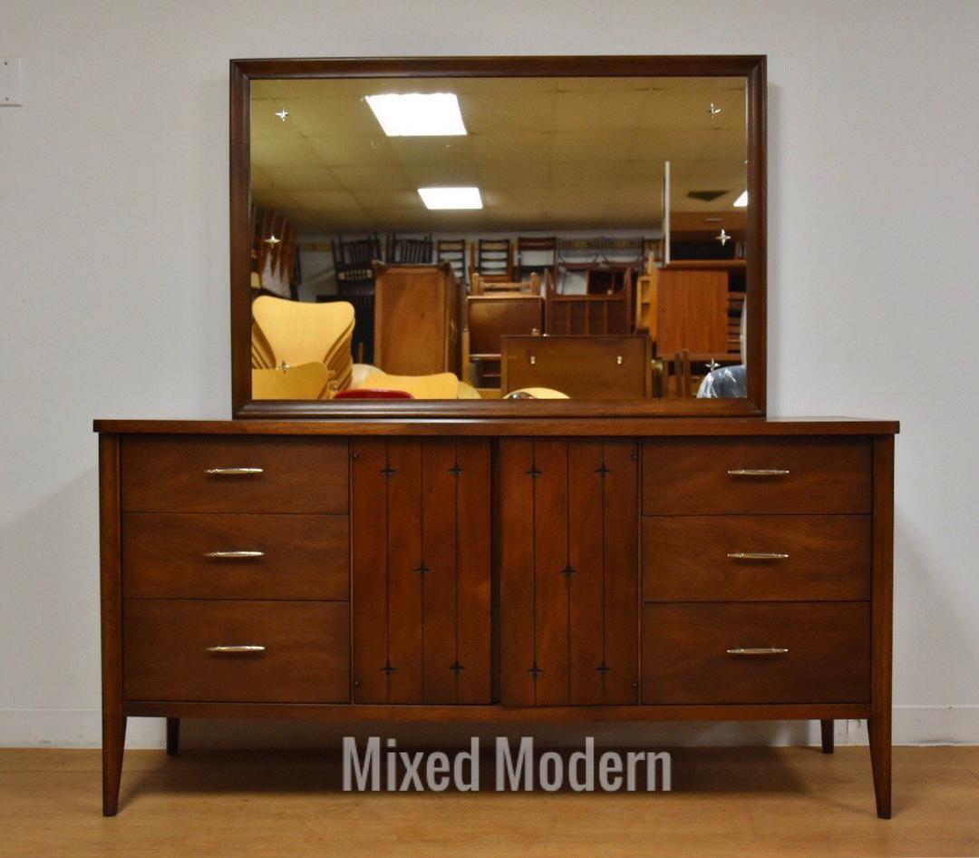 Broyhill Saga Dresser Set with Etched Mirror Midcentury Bedroom Sets
