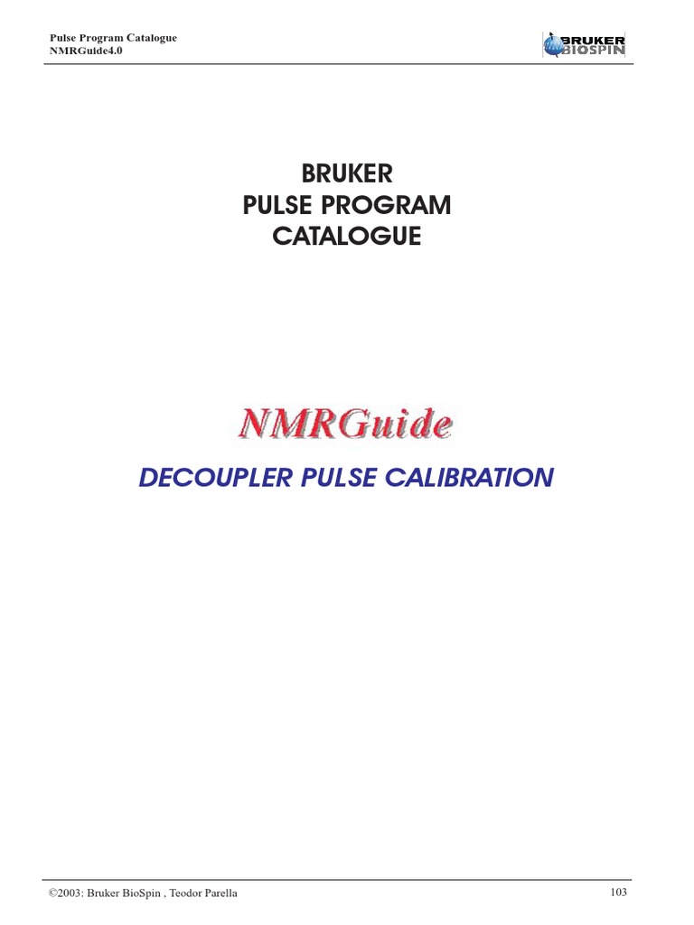 Bruker Pulse Program Catalogue PDF