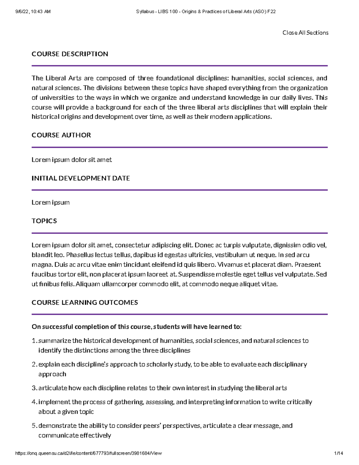 Libs 100 syllabus Close All Sections COURSE DESCRIPTION The Liberal