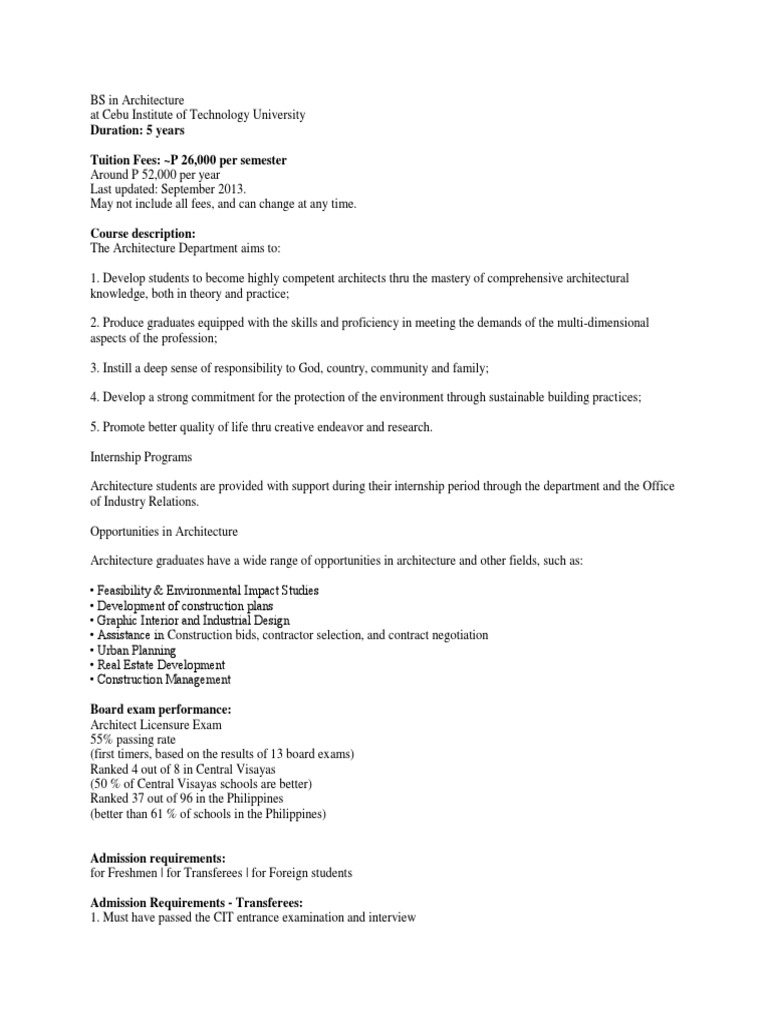 Architecture Bs in Architecture PDF Qualifications Titles