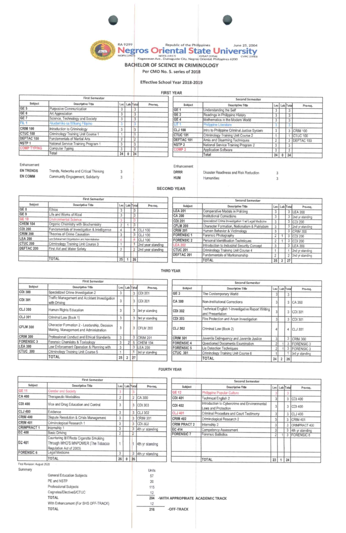 Bachelor OF Science IN Criminology BS Psychology Studocu