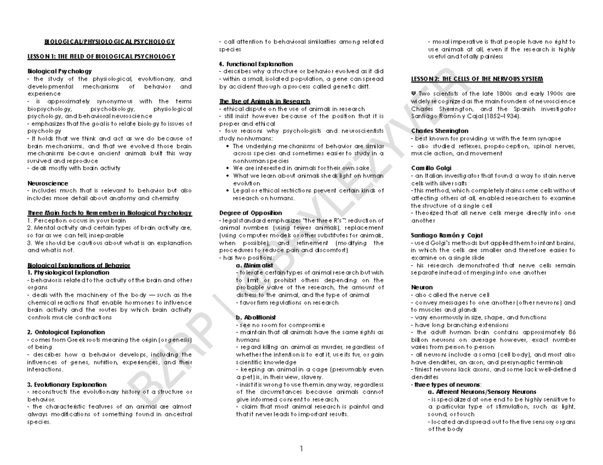 BiologicalPsychology Lecture Notes for BS PSYCHOLOGY STUDENTS BS