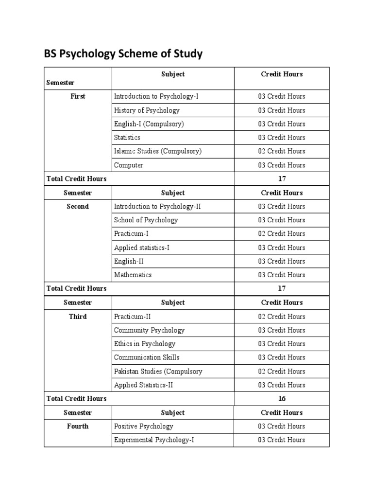 BS Psychology Scheme of Study PDF Psychology Science