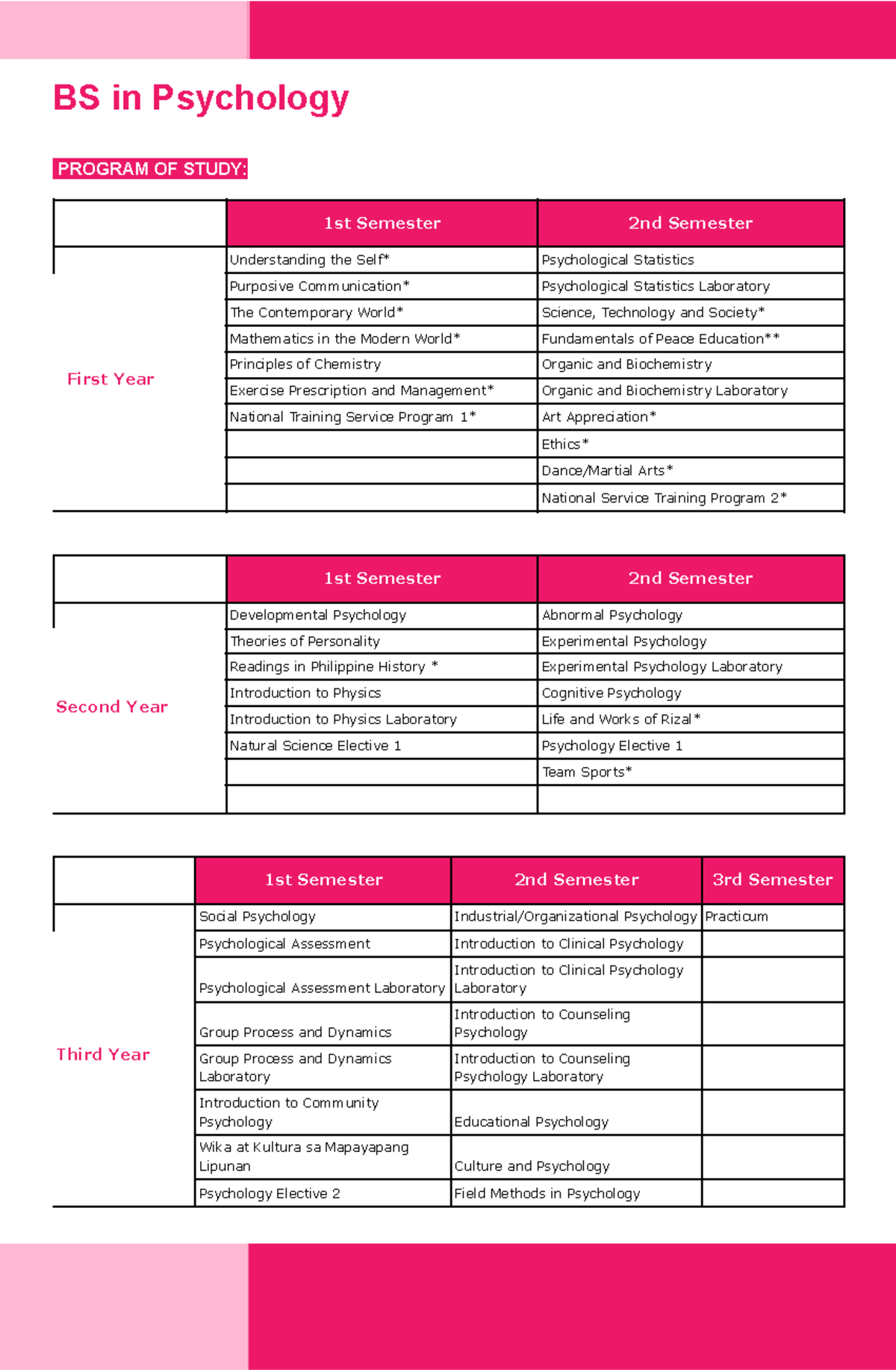 BS in Psychology syllabus BS in Psychology PROGRAM OF STUDY 1st
