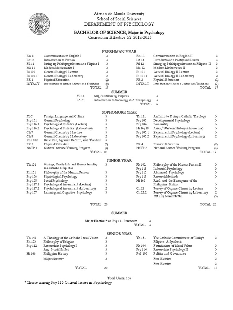 BS Psychology Curriculum PDF PDF Psychology Academia