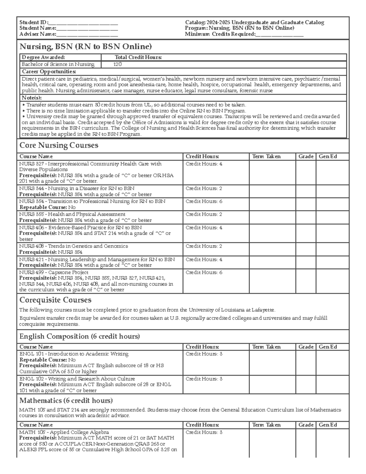 Nursing, BSN (RN to BSN Online) University of Louisiana Lafayette