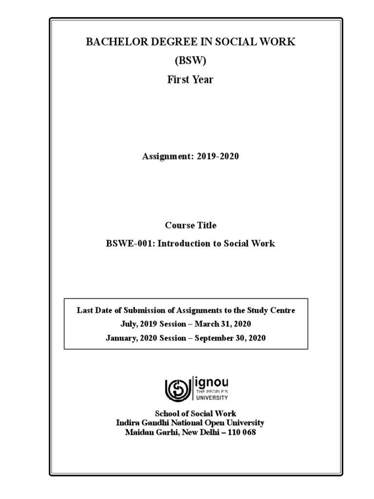 Bachelor Degree in Social Work (BSW) First Year Assignment 20192020