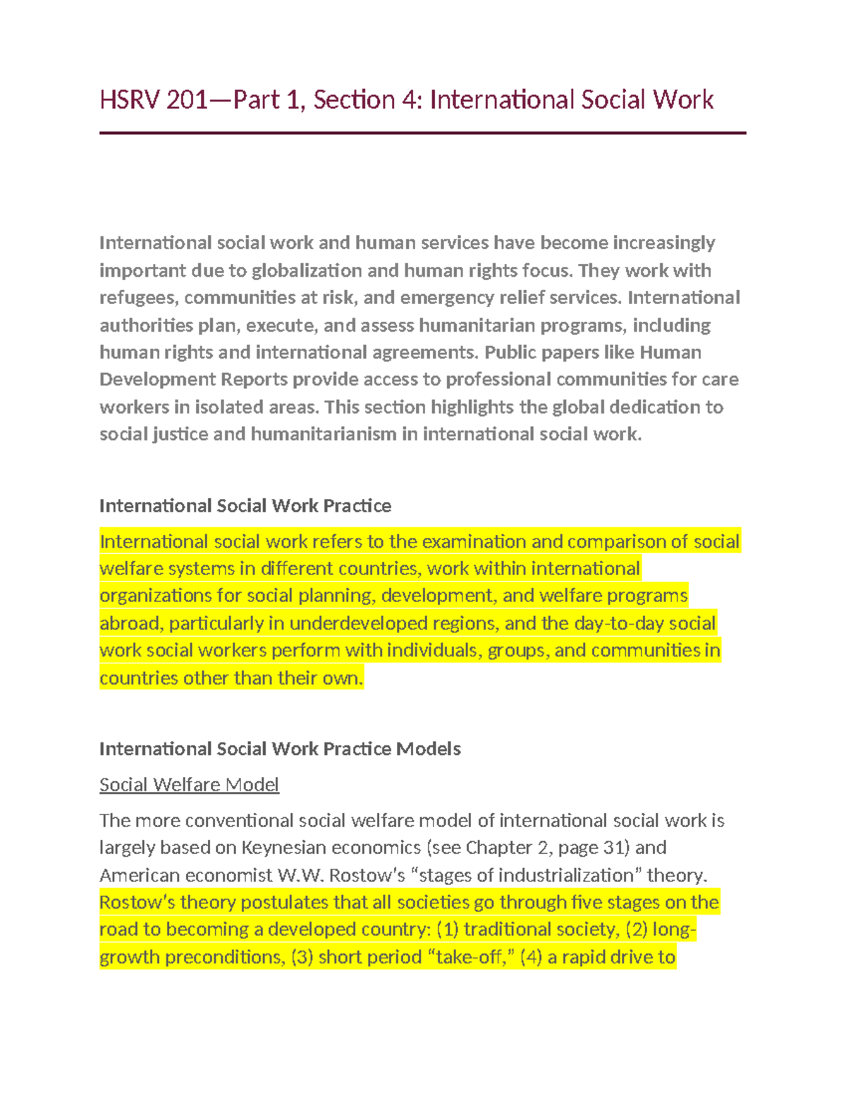 HSRV 201 Part 1, Section 4 International Social Work HSRV 201—Part 1