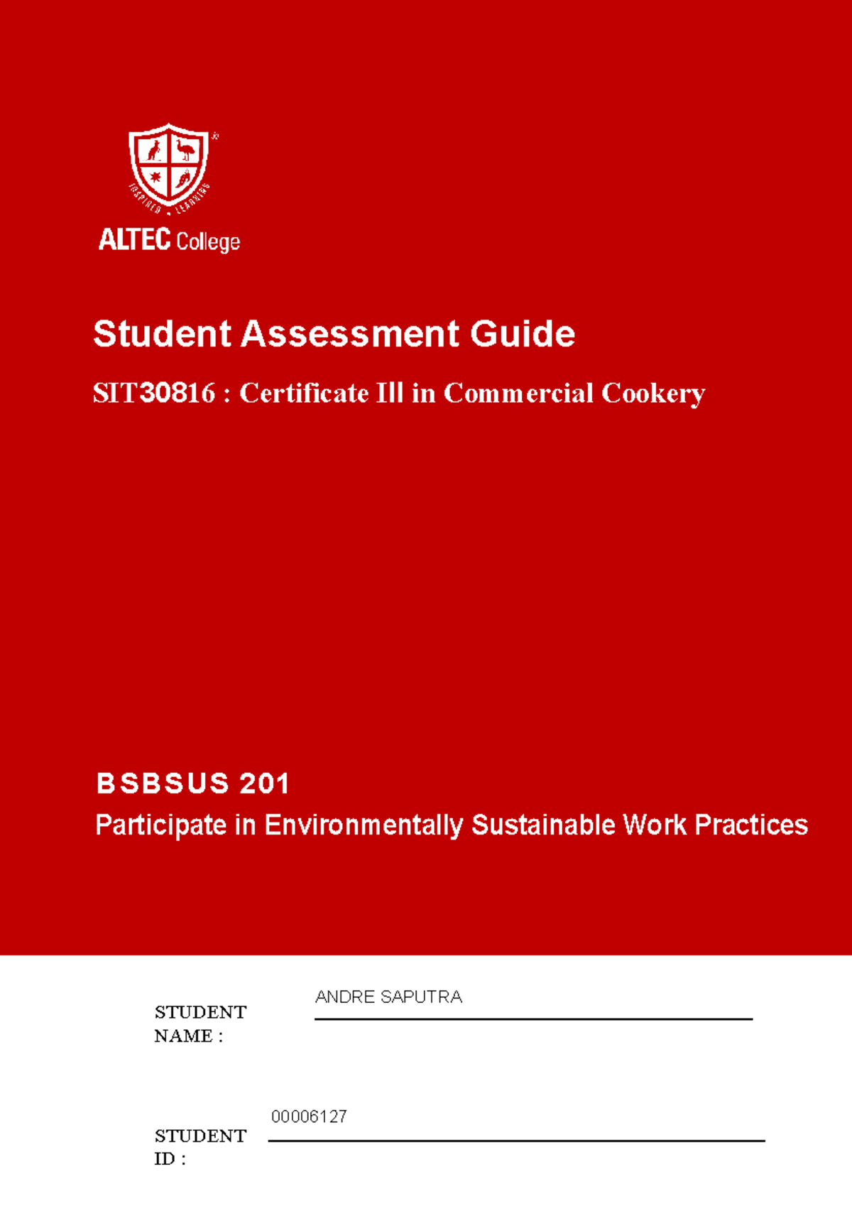 Bsbsus 201 Participate in environmentally sustainable work practices