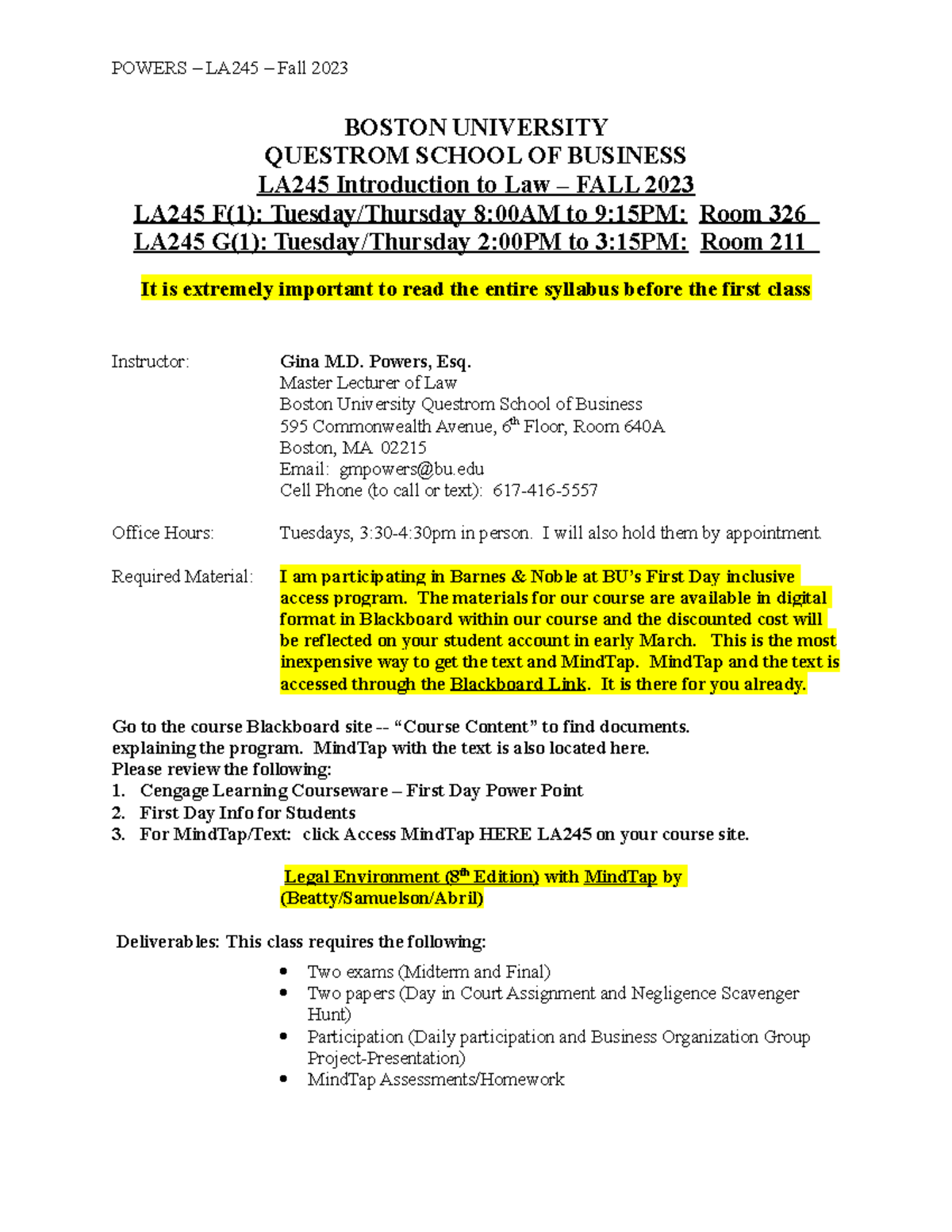 Syllabus BOSTON UNIVERSITY QUESTROM SCHOOL OF BUSINESS LA245