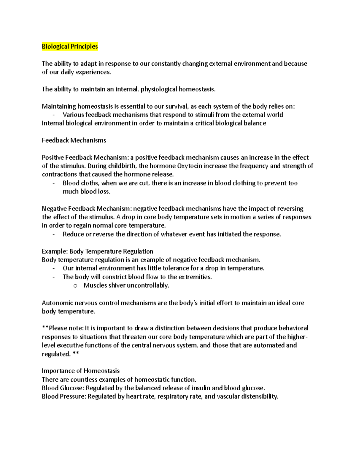 Ch7 Summary Biological Principles II Ch 7 most important points 7