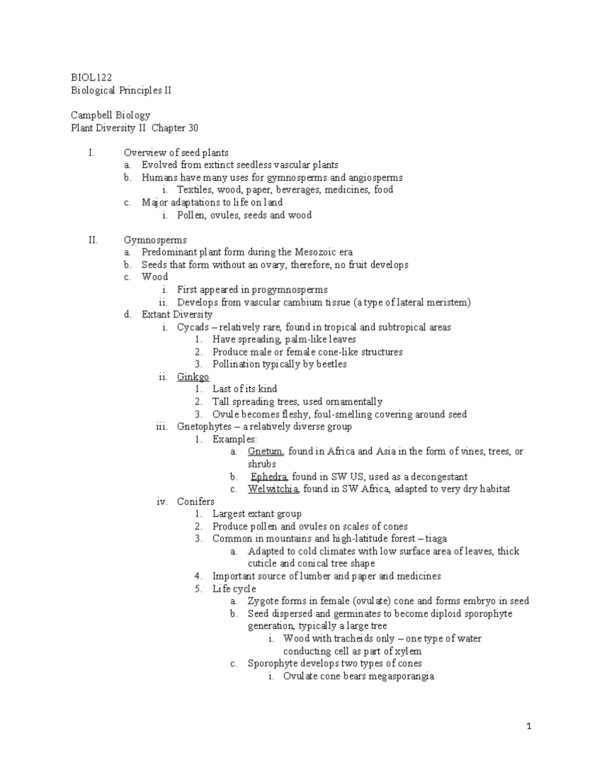 Plant Diversity II Campbell ch30 Sp16 BIOL Biological Principles II