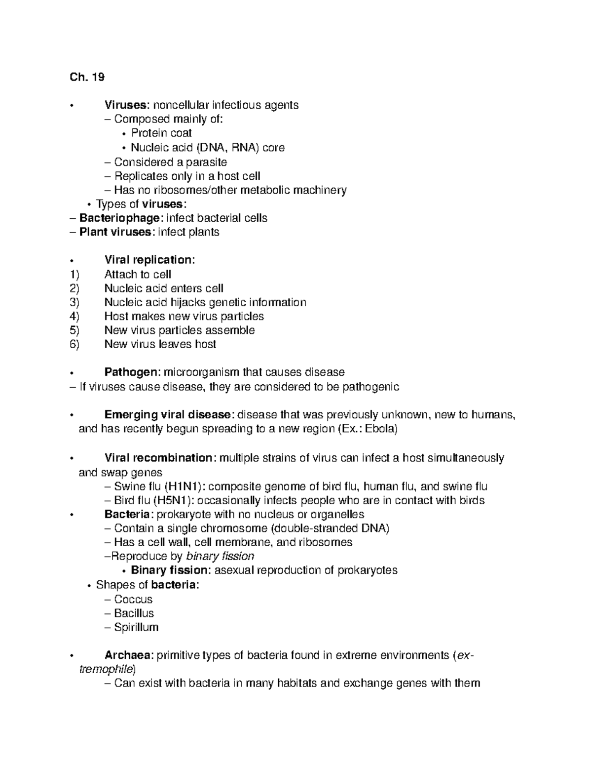 Biology II Chapter 19 Ch. 19 Viruses noncellular infectious agents