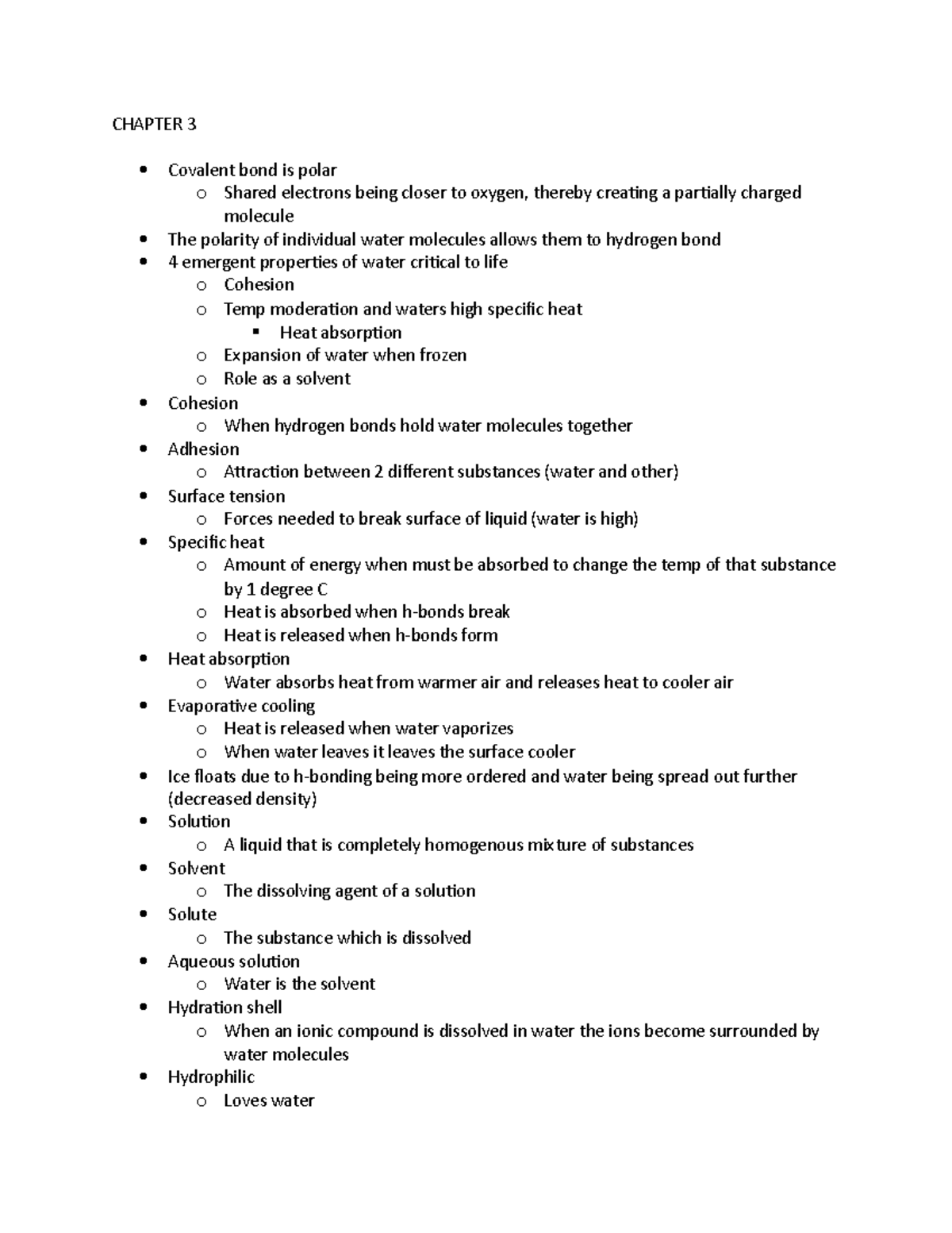Biology Principles II Exam 1 study guide CHAPTER 3 Covalent bond is