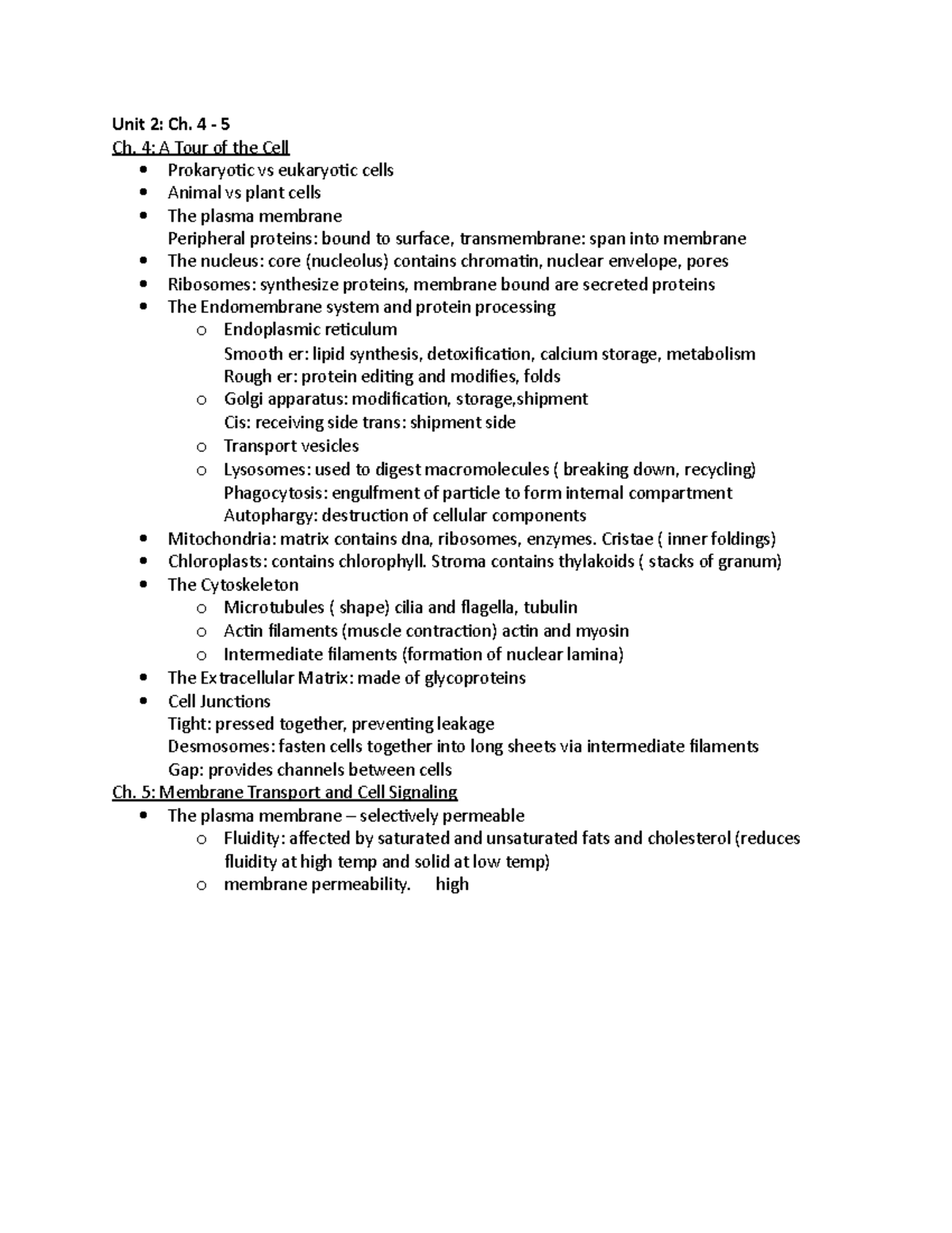 Unit two biological principles Unit 2 Ch. 4 5 Ch. 4 A Tour of the