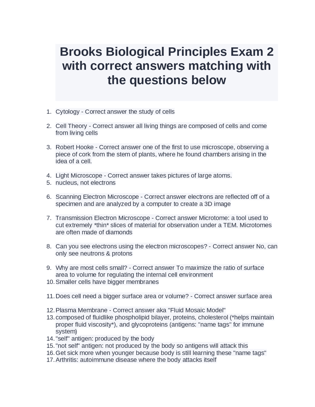 Brooks Biological Principles Exam 2 with correct answers matching with