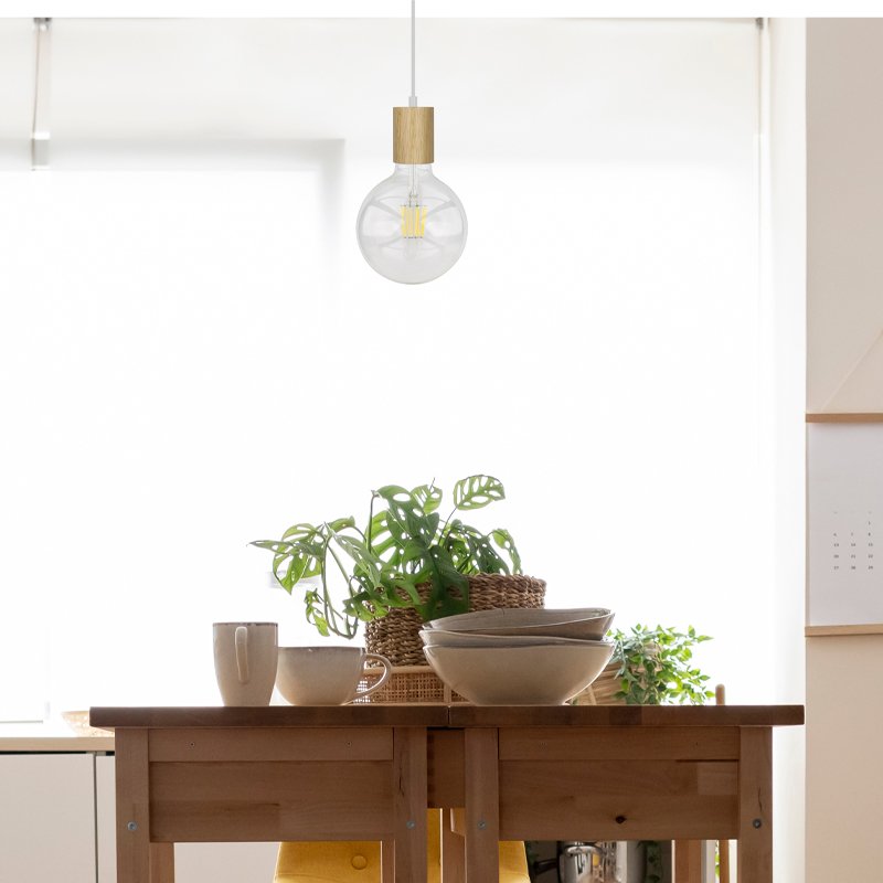 BUD WOOD/WHITE FLEX 1LT PENDANT Lightingplus