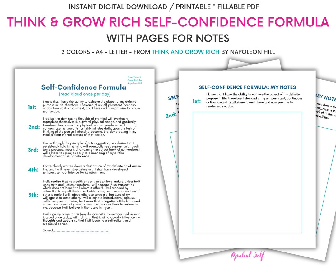 Think and Grow Rich Selfconfidence Formula With Notes Pages Fillable