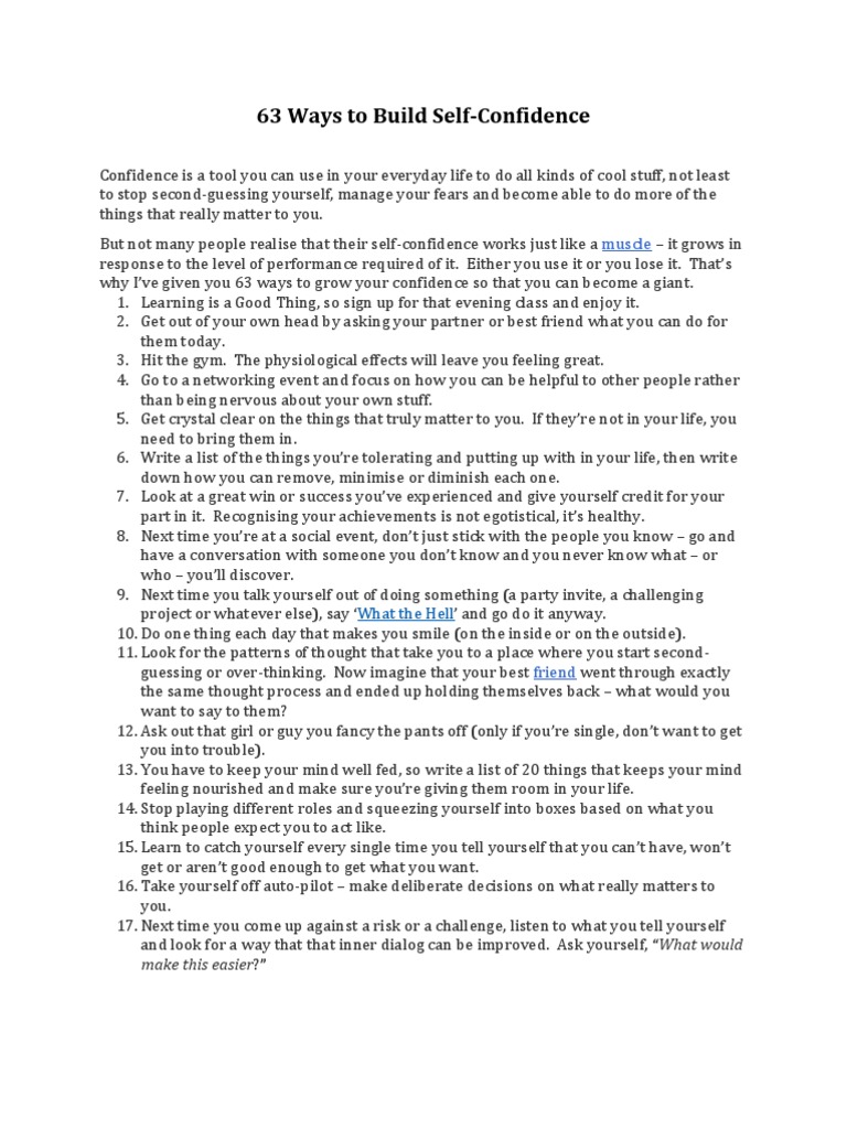 63 Ways To Build Self Confidence PDF Psychological Concepts