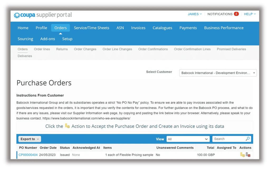 COUPA in INCHCAPE Coupa Supplier Portal CSP Purchase