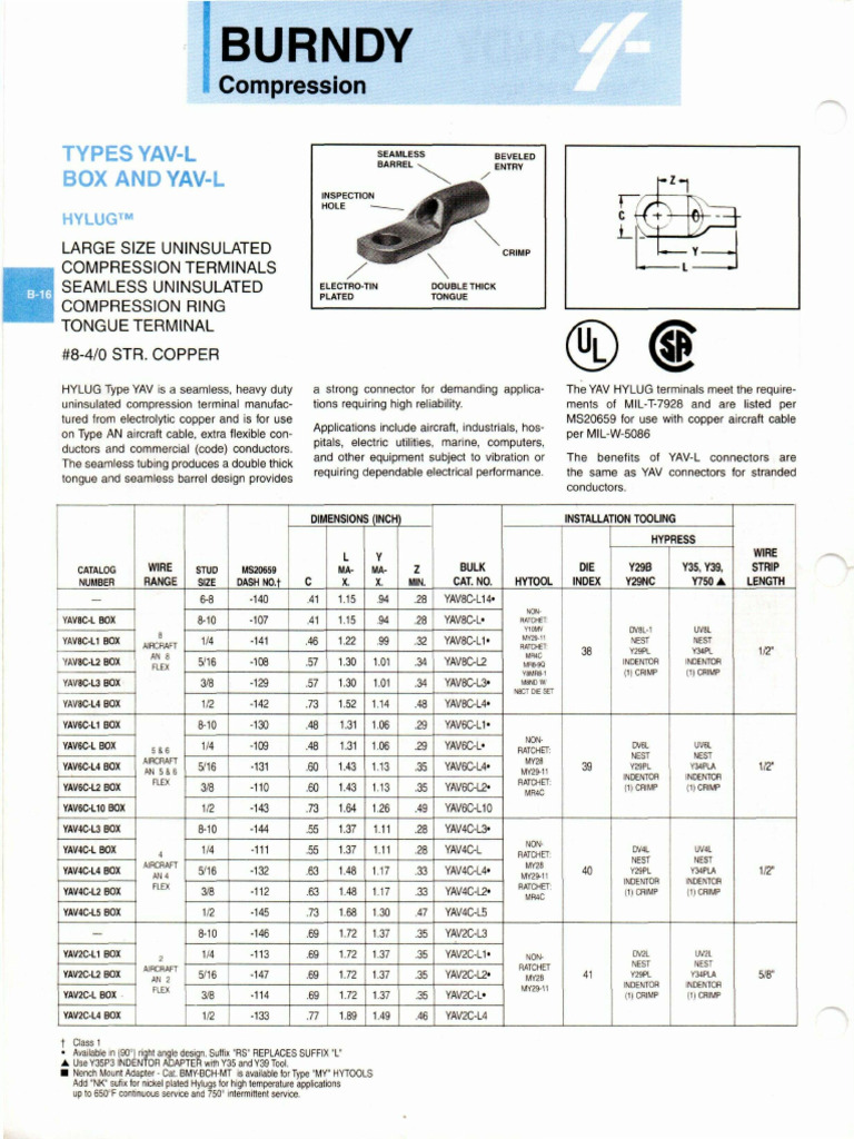 Datasheet Burndy Types YavL PDF Electrical Connector