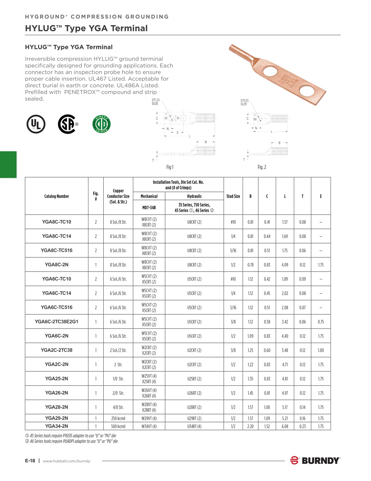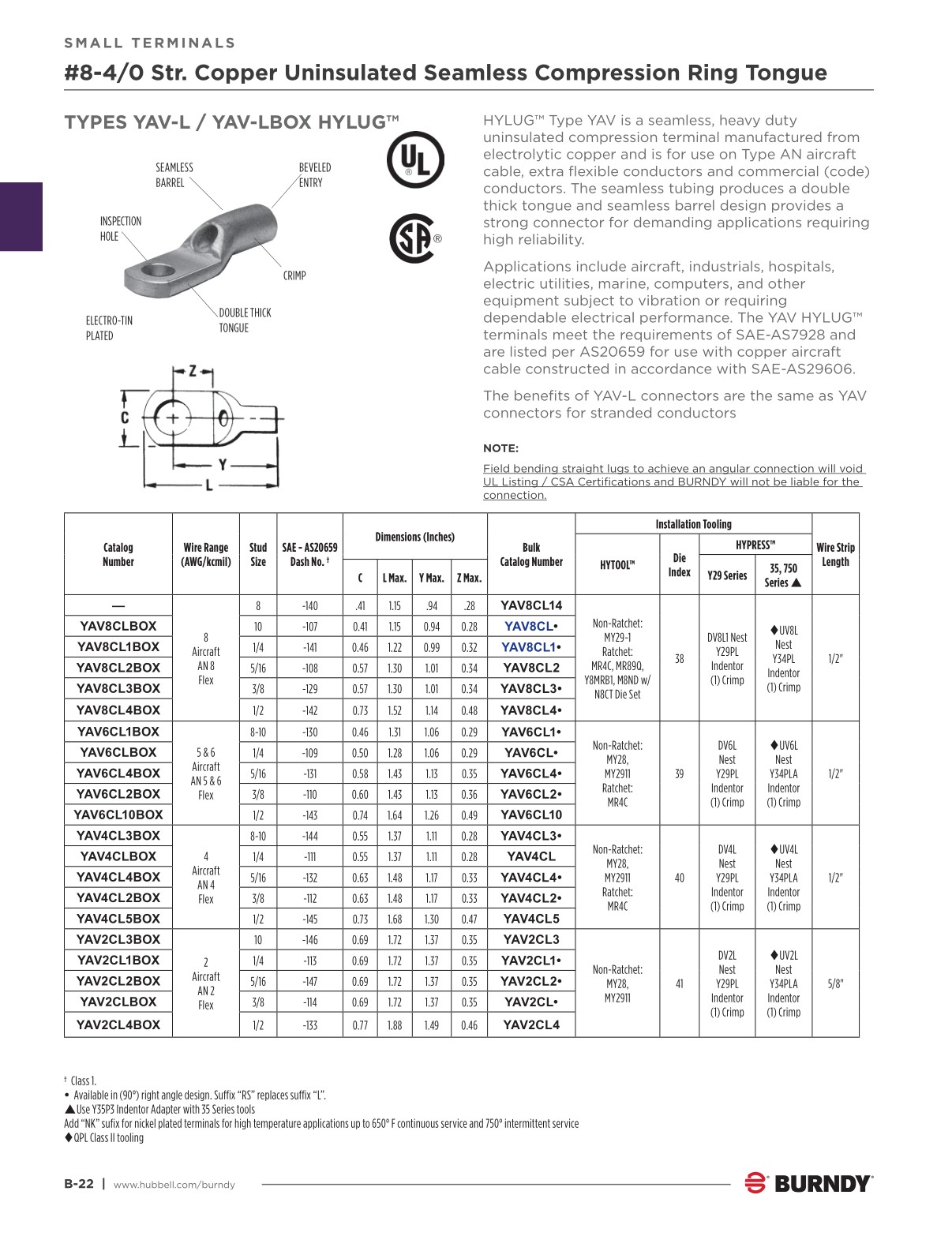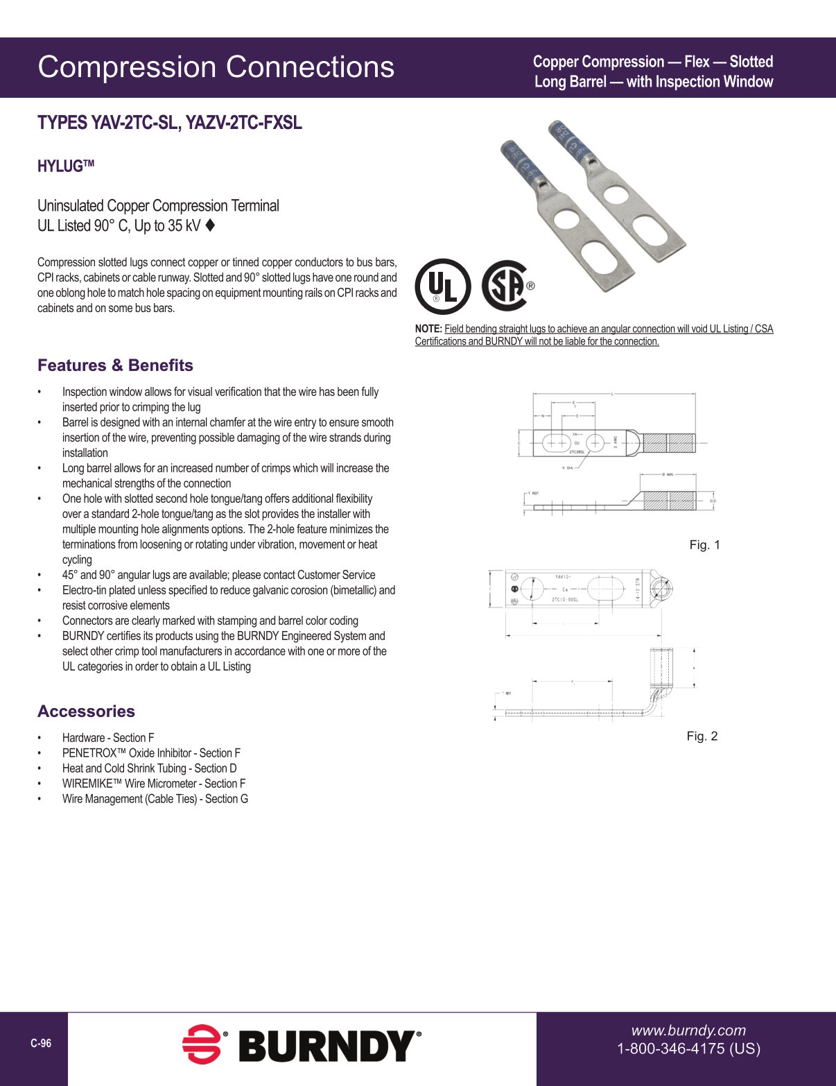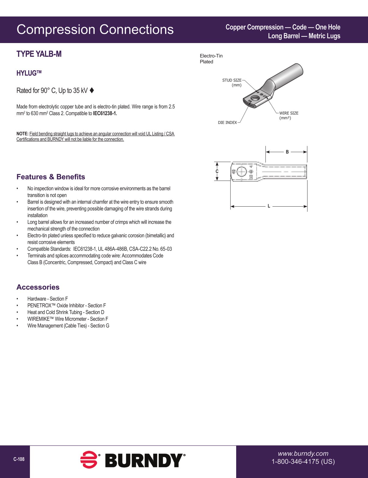 BURNDY HYLUG™ YALB Copper Compression Terminal Specs