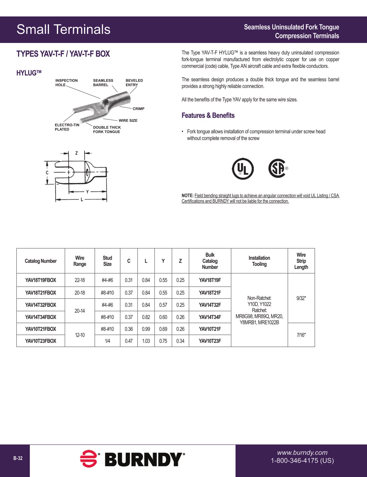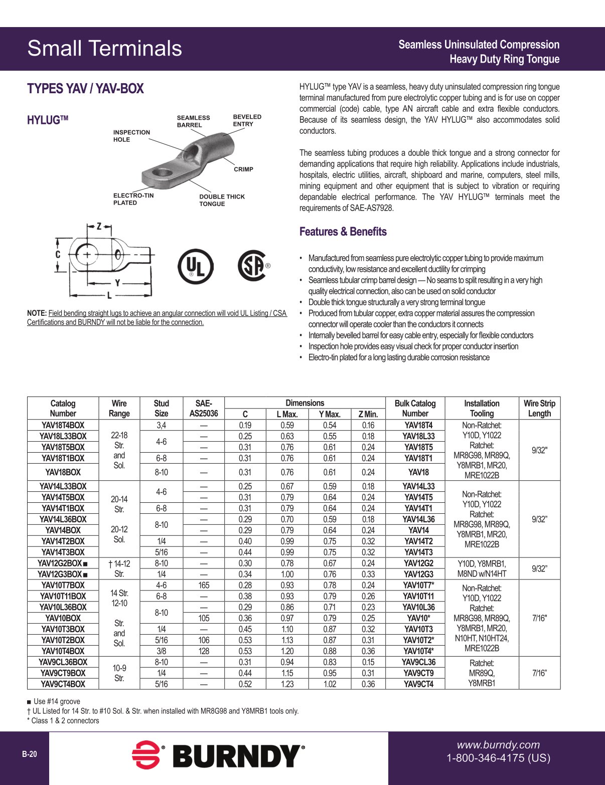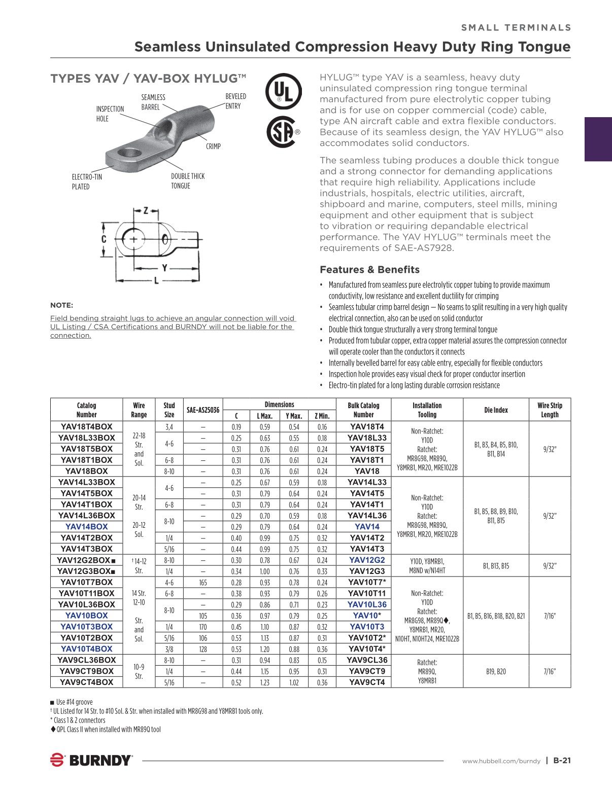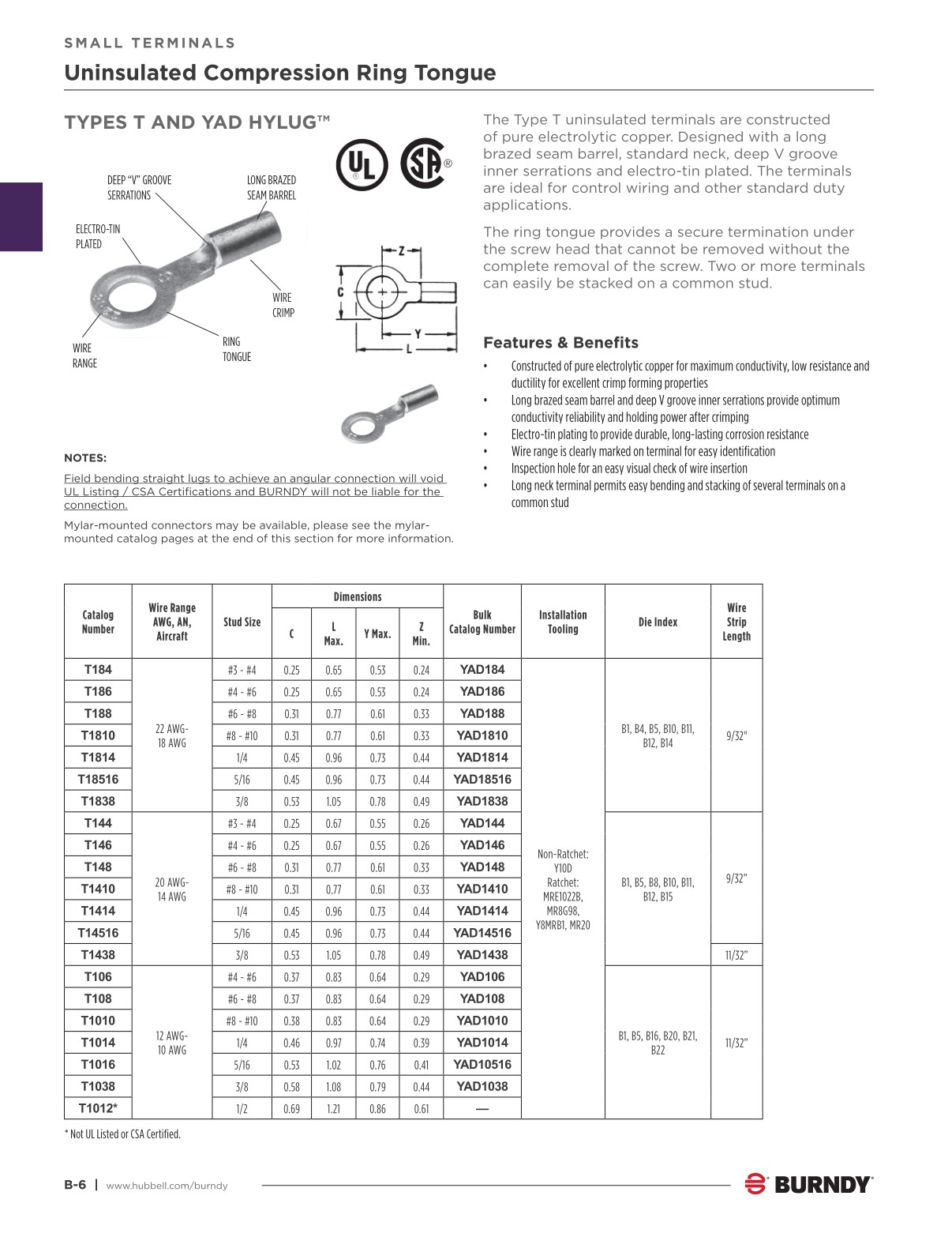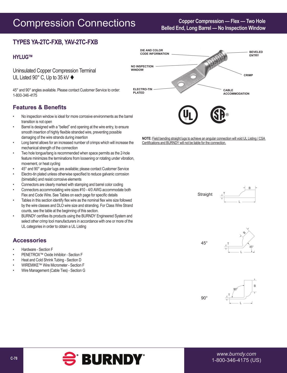BURNDY HYLUG™ YALB Copper Compression Terminal Specs