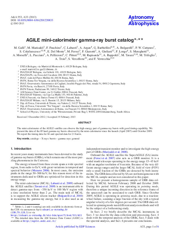 (PDF) AGILE minicalorimeter gammaray burst catalog