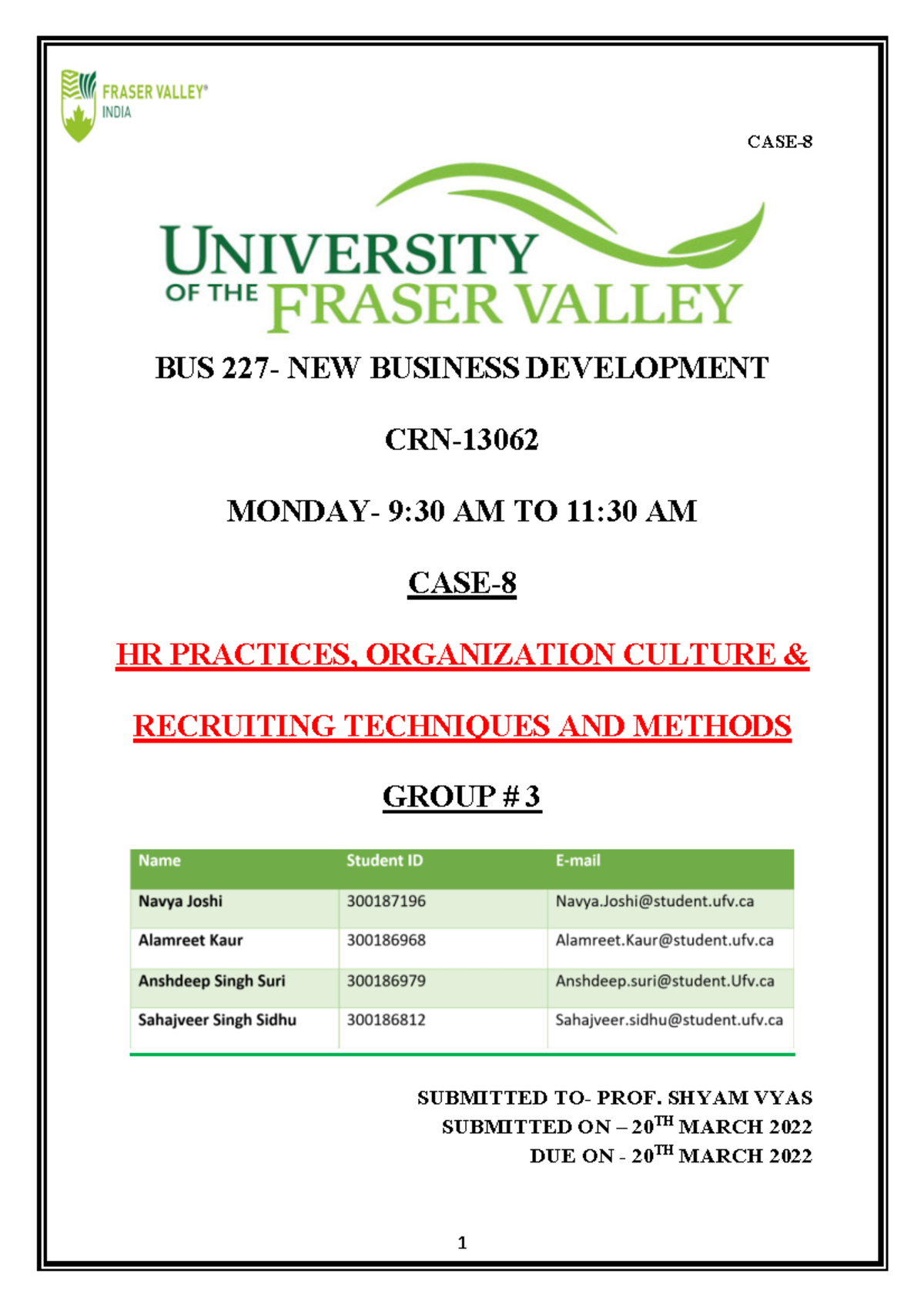 Bus 227 Group Assignment 3 Group 6 Monday class BUS 227 UFV