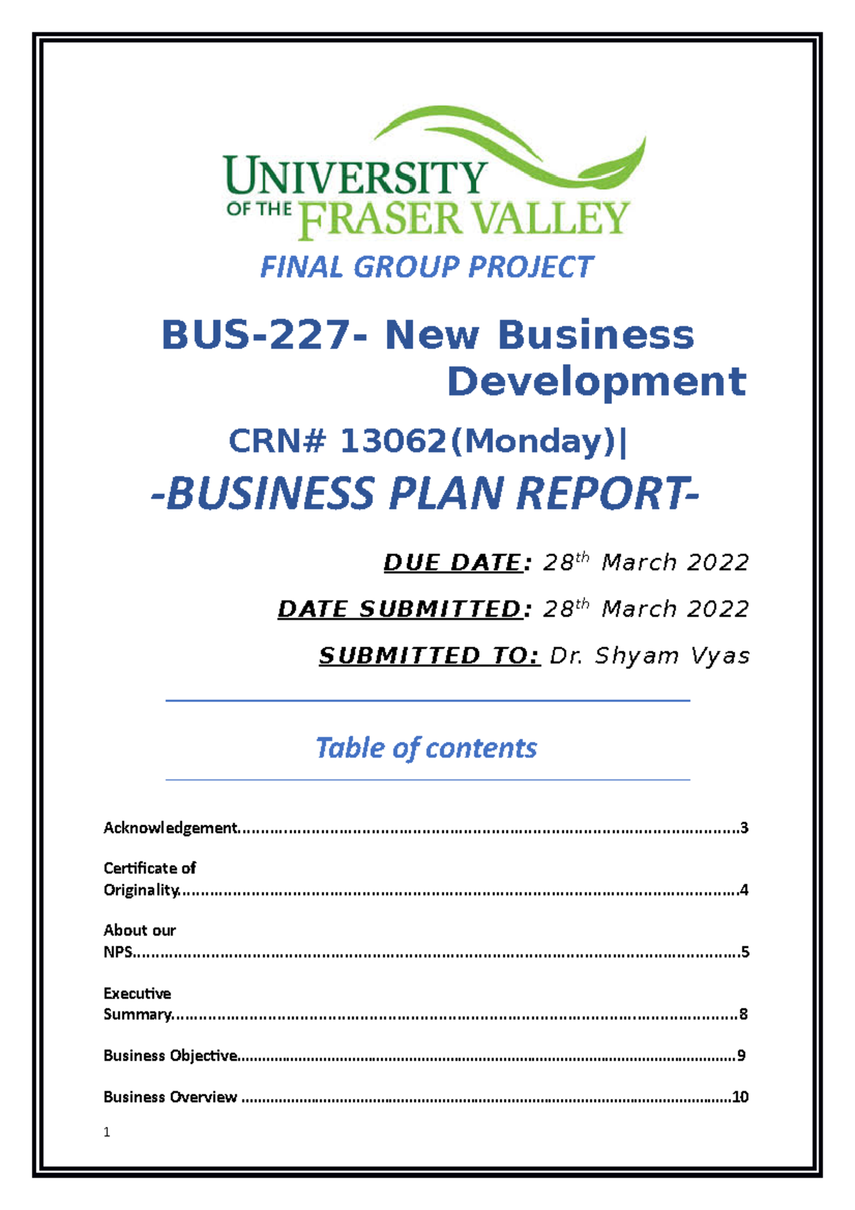 BUS 227 Business Plan Group 6 Monday class BUS 227 UFV Studocu
