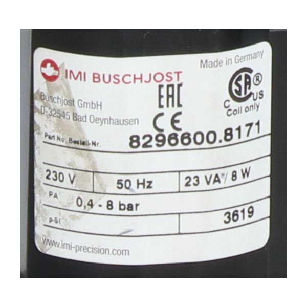 Buschjost 8494734.9302 Solenoid Valve 16W 8Bar New NMP