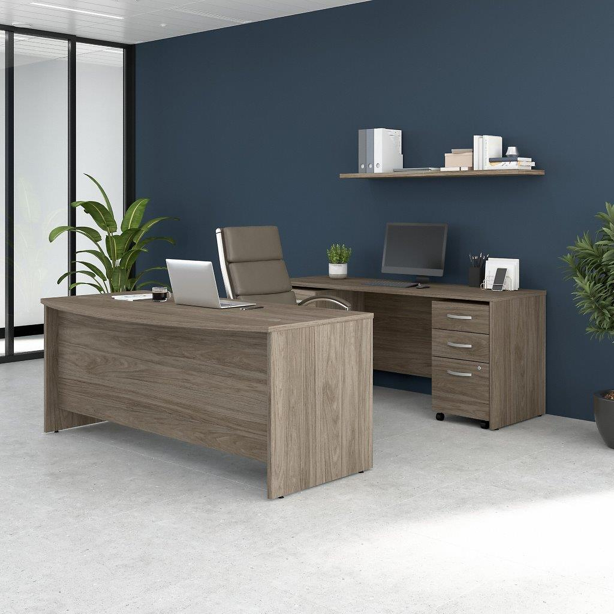 Bush Business Furniture Studio C 72W x 36D Bow Front Desk with Mobile