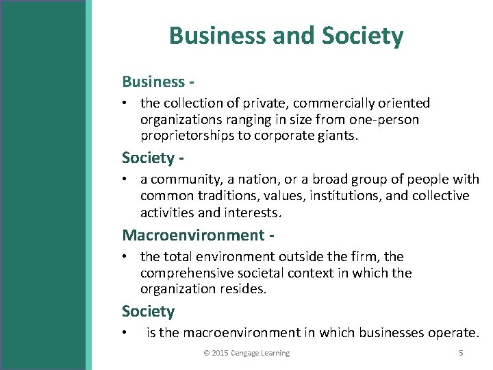 2015 Cengage Learning 1 Chapter 1 The Business