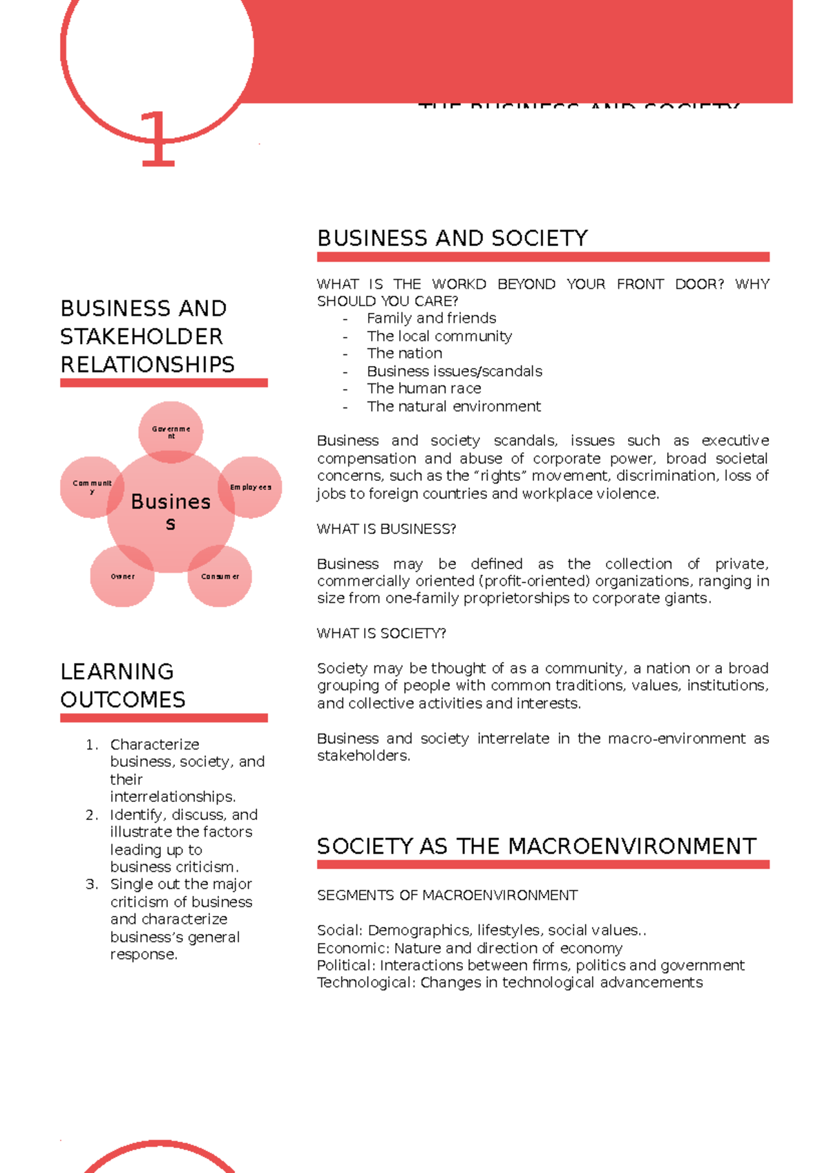 The business and society relationship 1 THE BUSINESS AND SOCIETY