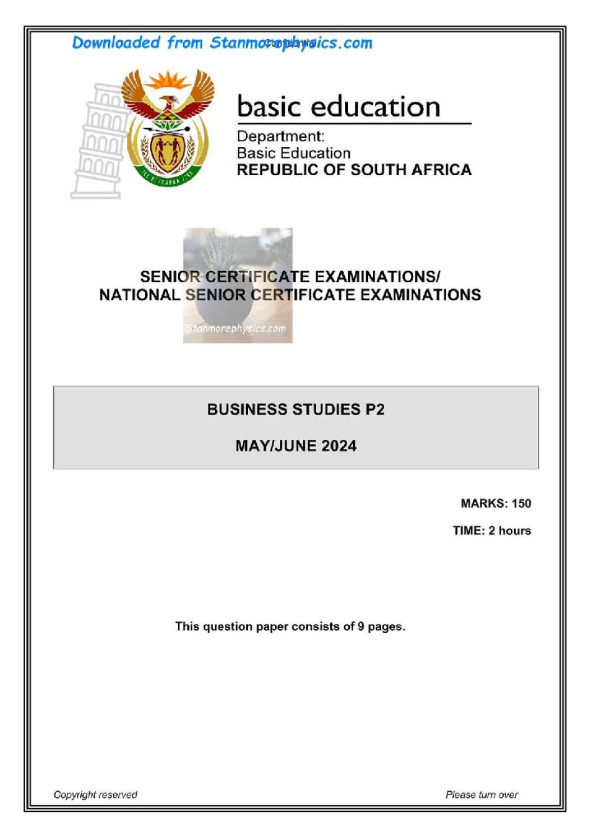 NSC Business Studies Grade 12 May/June 2024 P2 & Memo Comprehensive