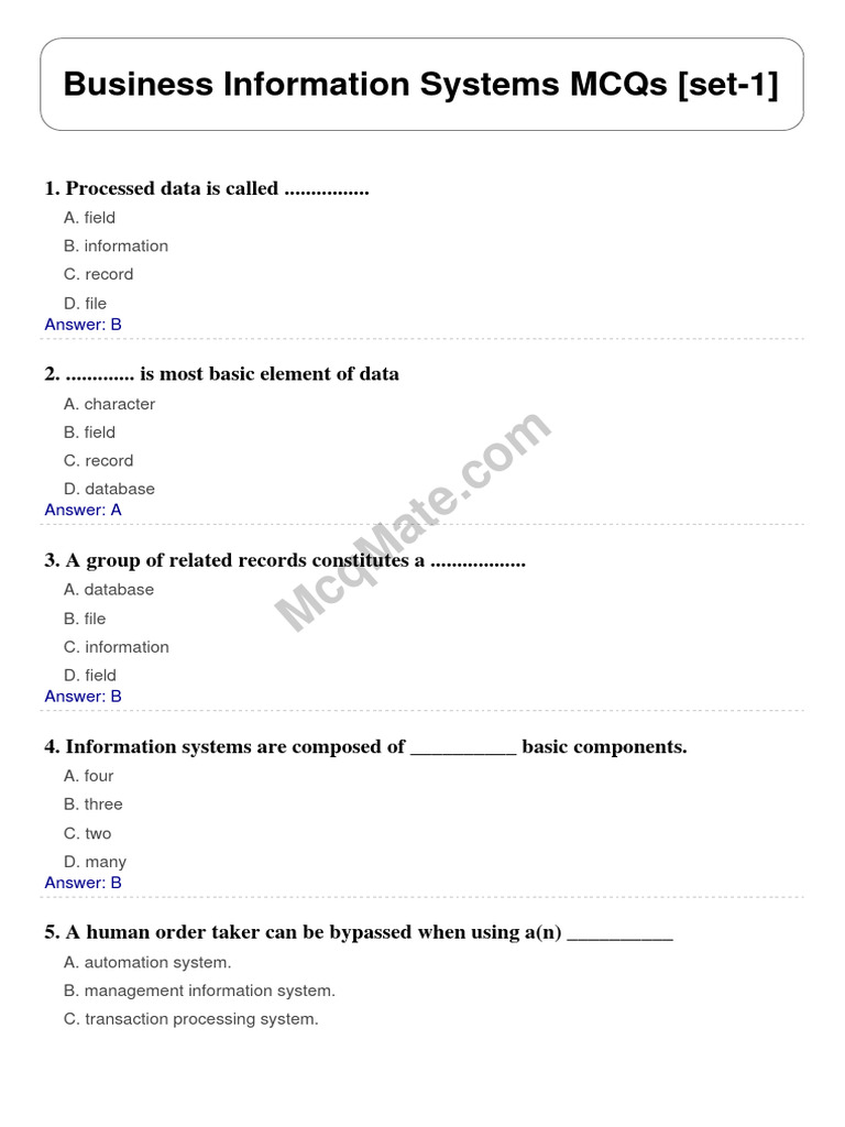 Business Information Systems Set 1 PDF E Commerce Information