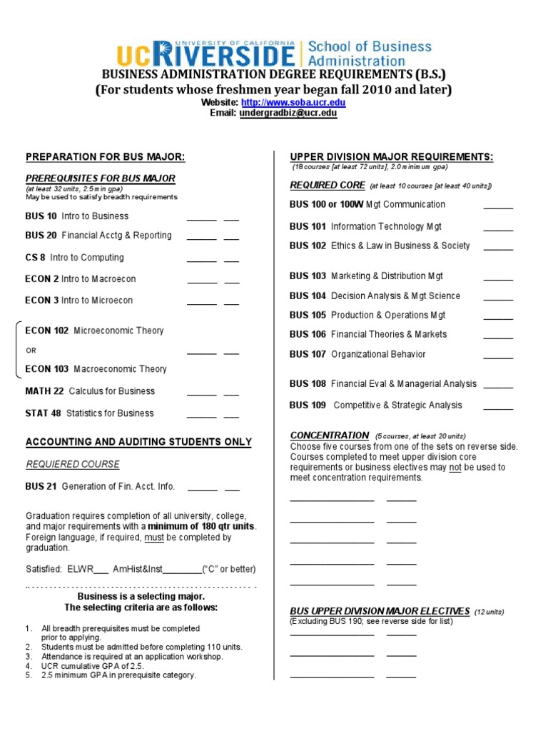 UCR Business Major Requirements PDF Marketing Economies
