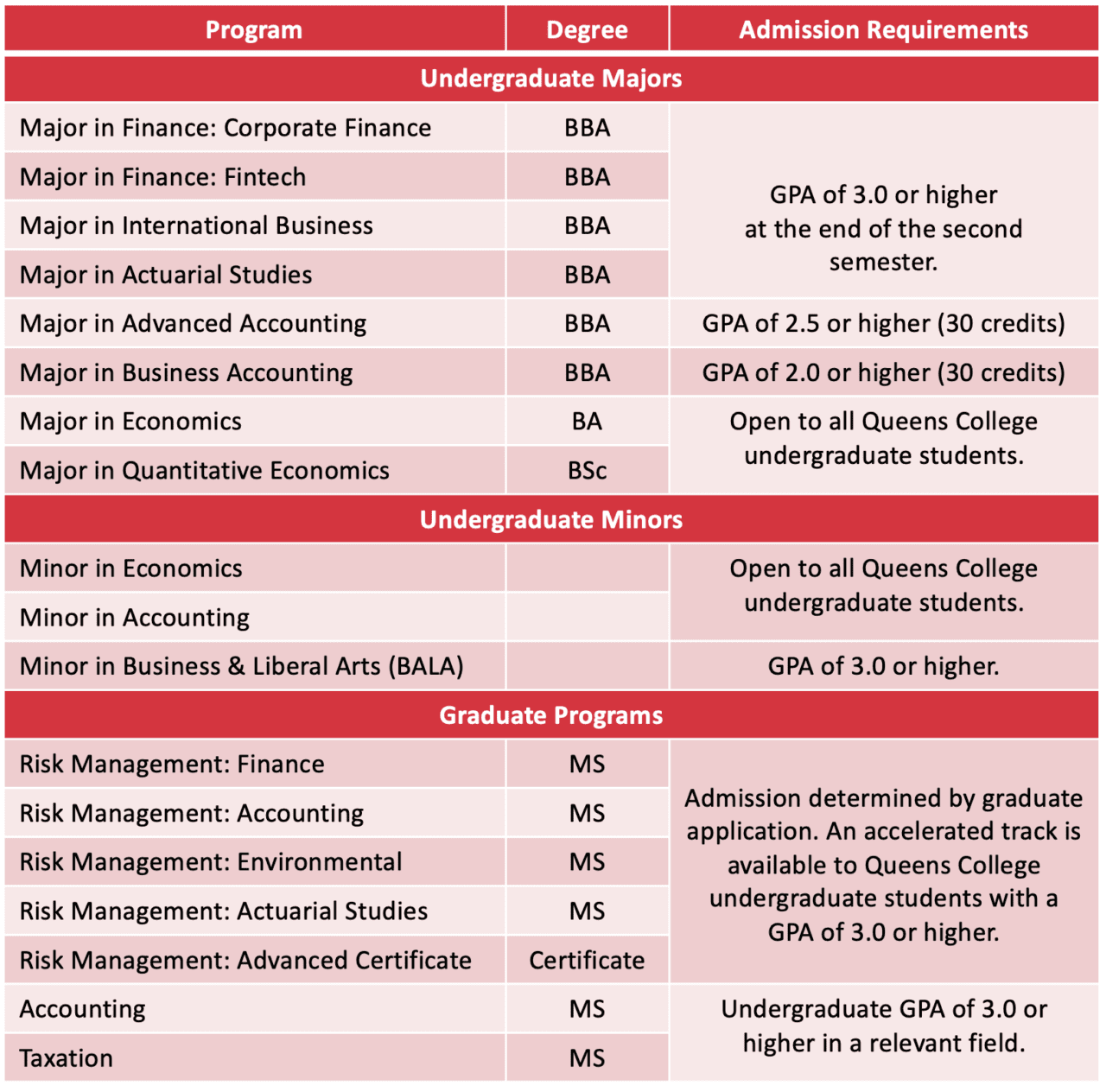 Academic Programs School of Business