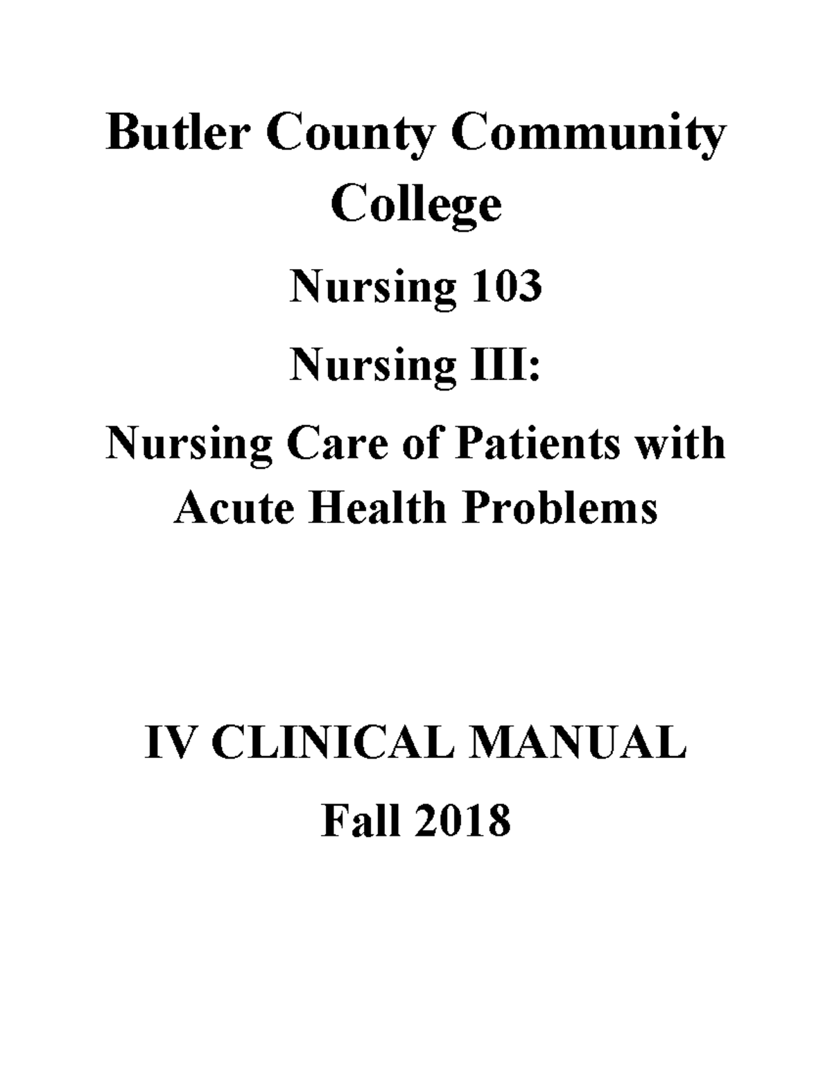 IV lab Clinical manual.2018 Butler County Community College Nursing