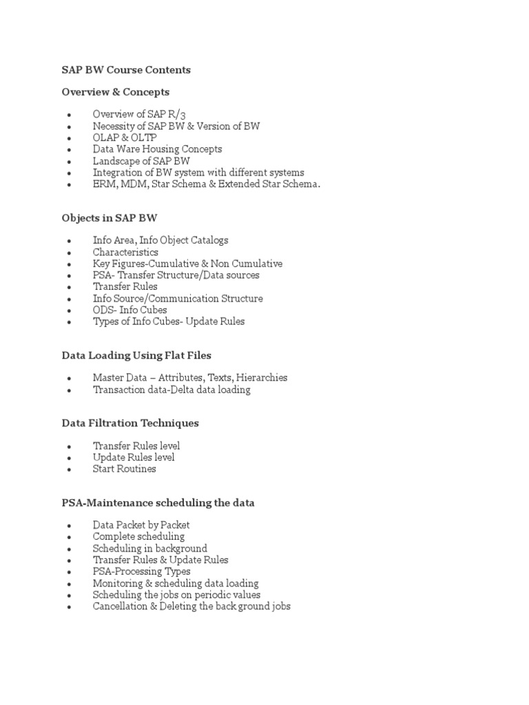 SAP BW Course Contents PDF Data Warehouse Metadata