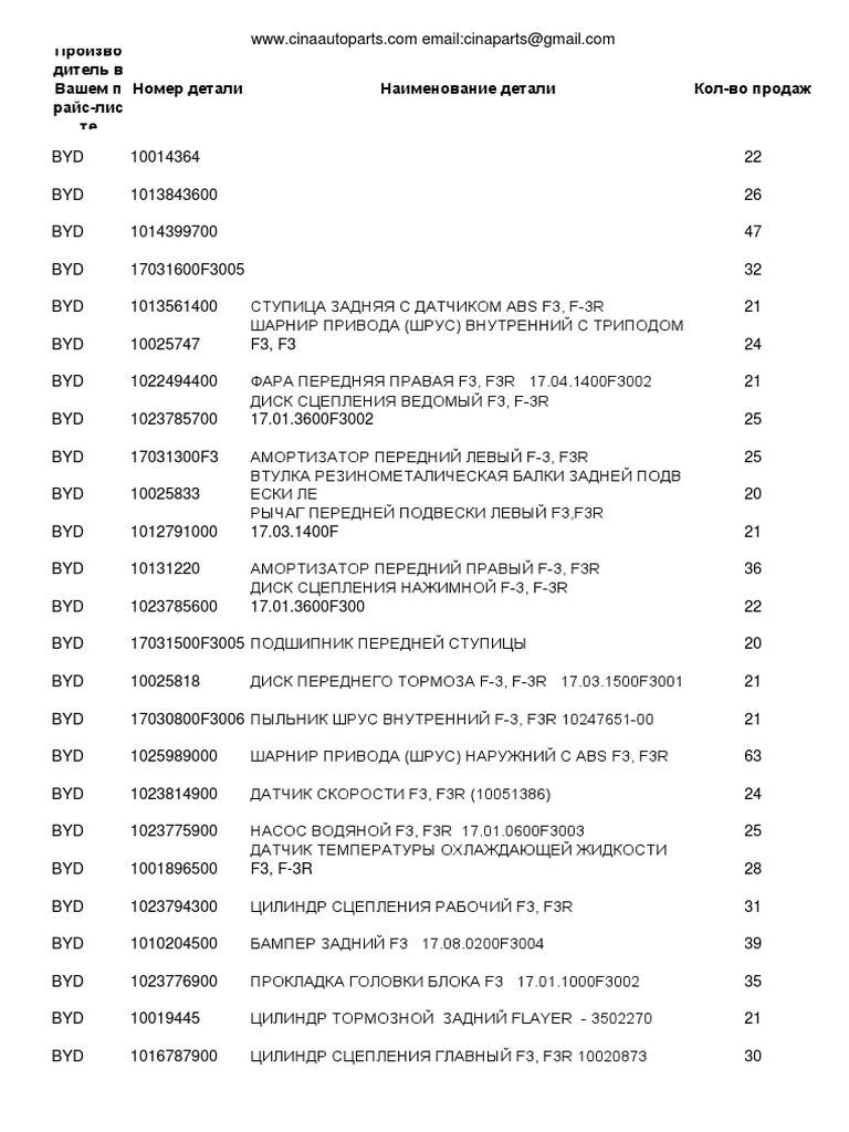 Byd f3listparts catalogue byd parts byd f0 byd s6 byd g6 PDF