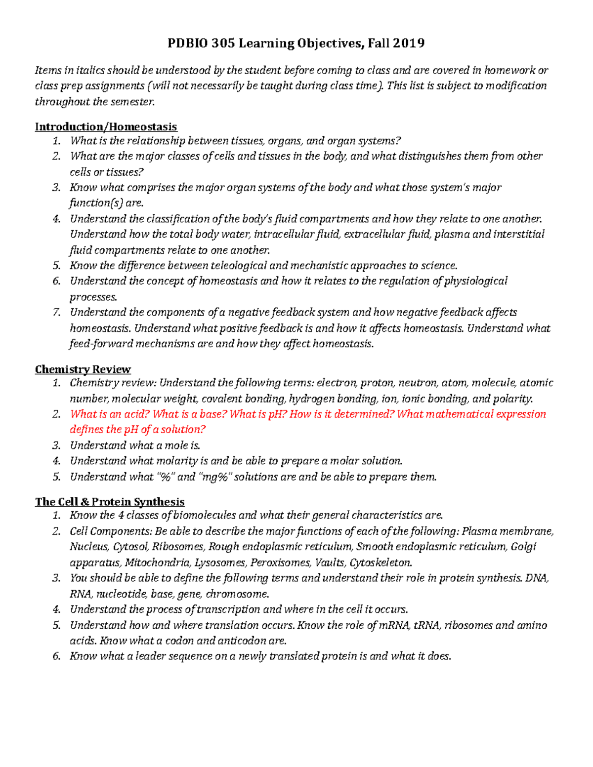PDBIO 305 F2019 Learning Objectives PDBIO 305 Learning Objectives